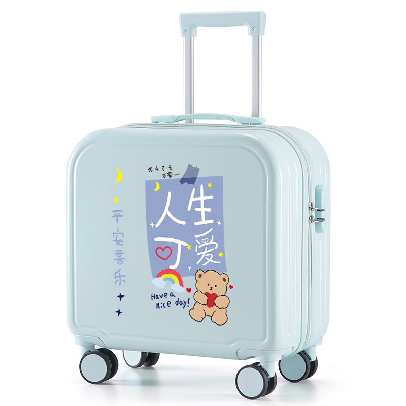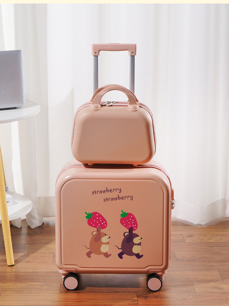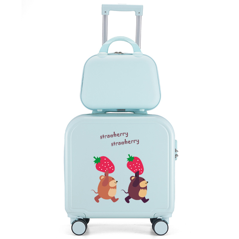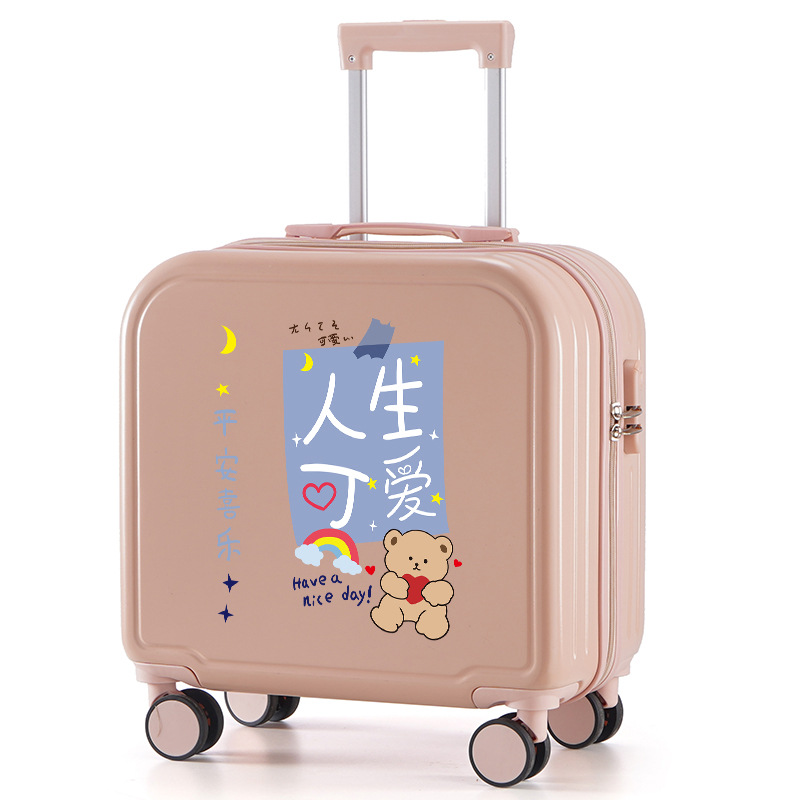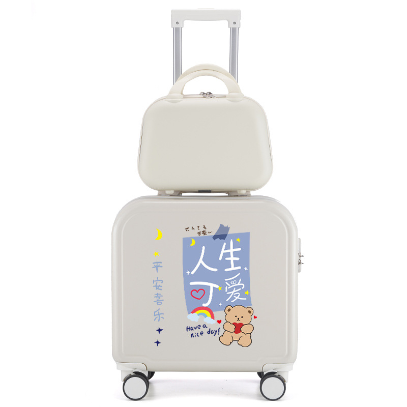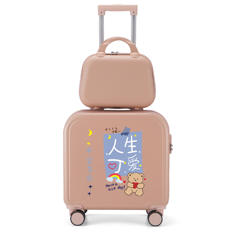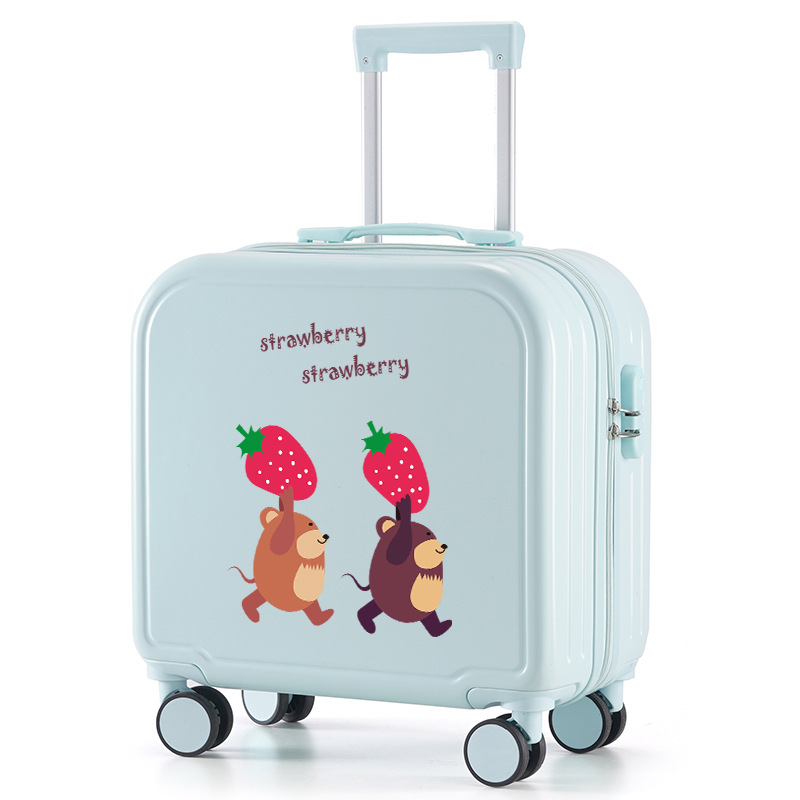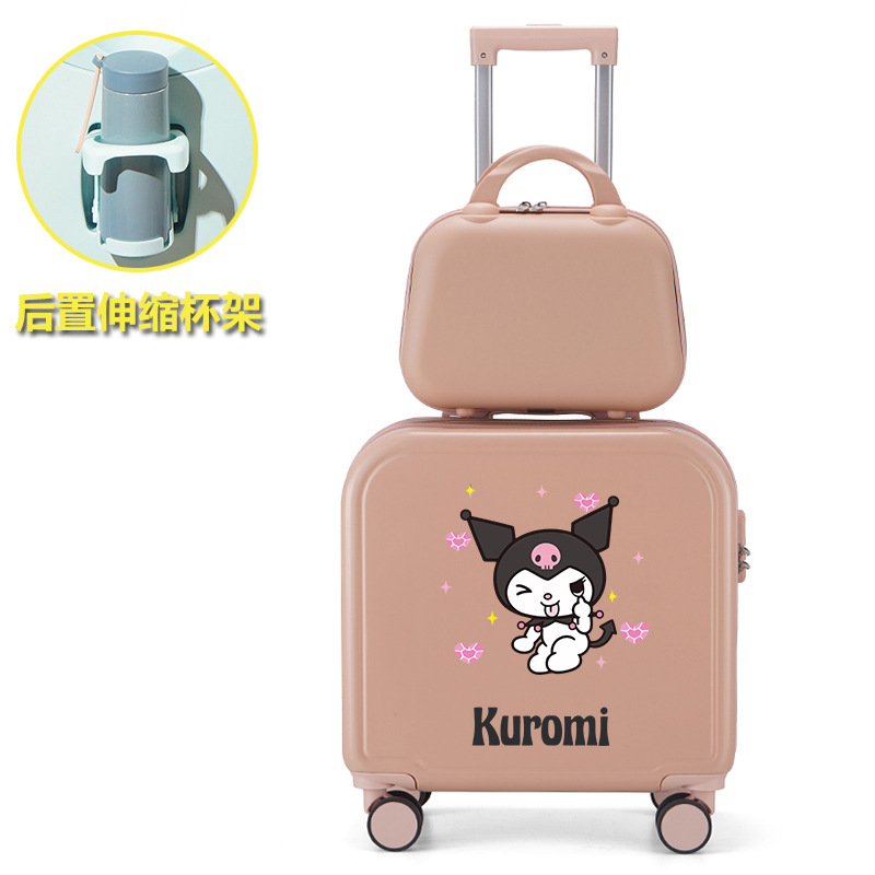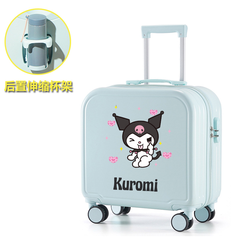 컵 홀더가 인쇄 된 학생 여행 암호 상자가있는 새로운 귀여운 만화 수하물 18 인치 보딩 트롤리 케이스