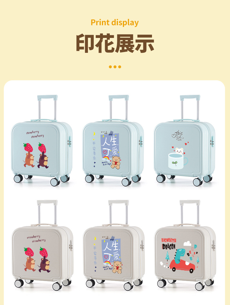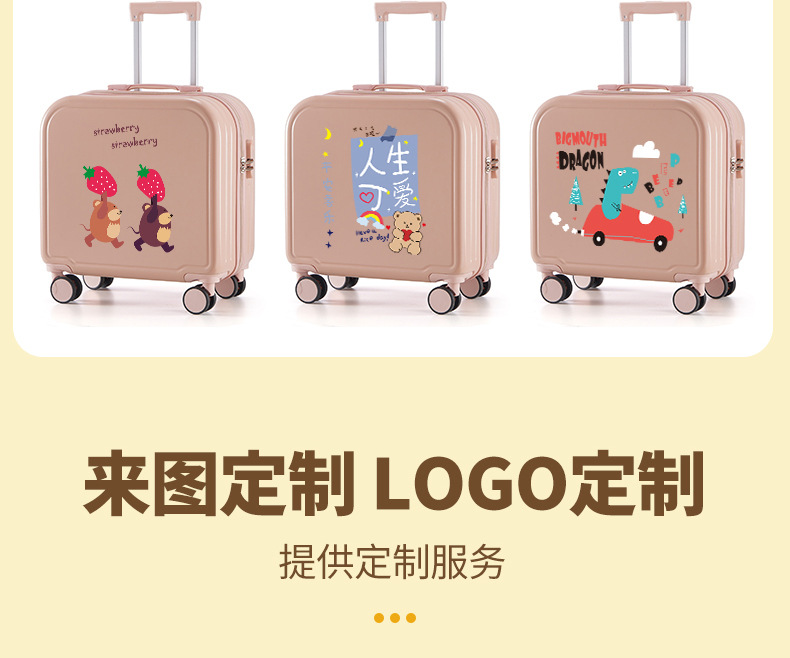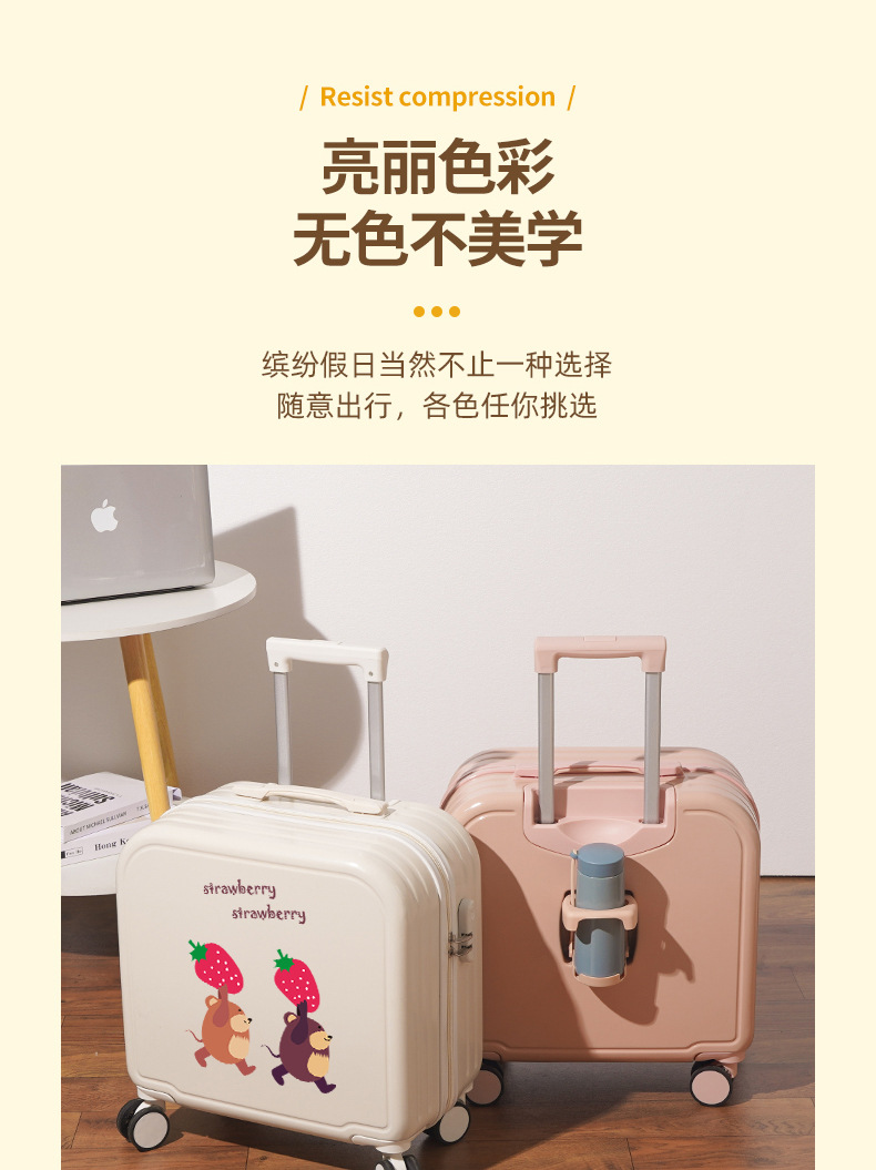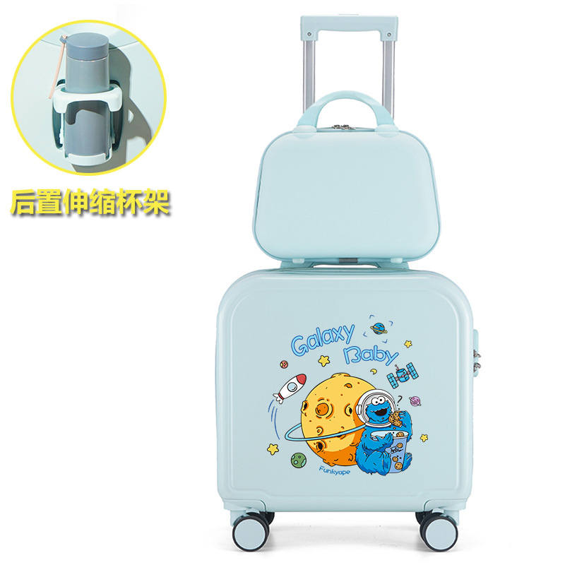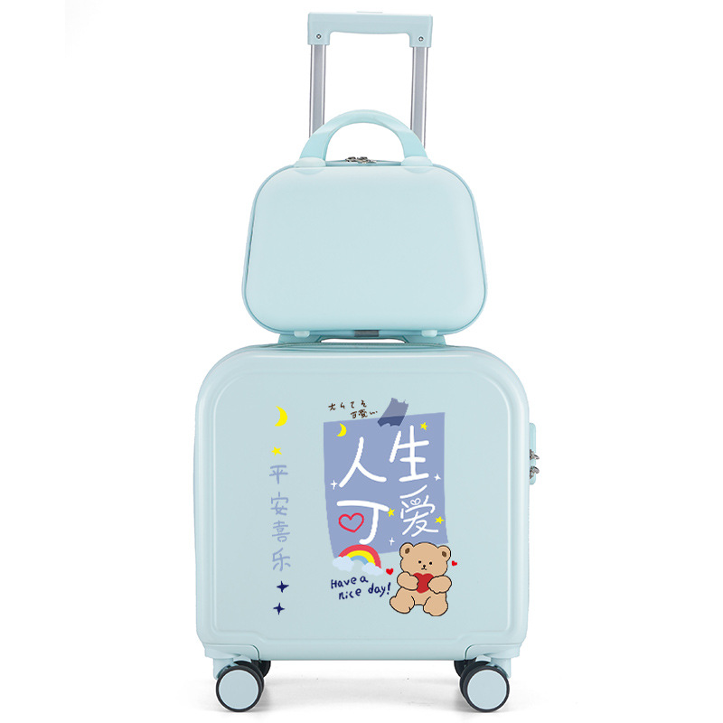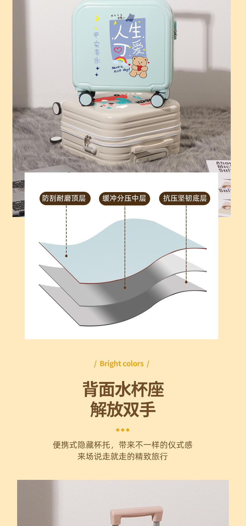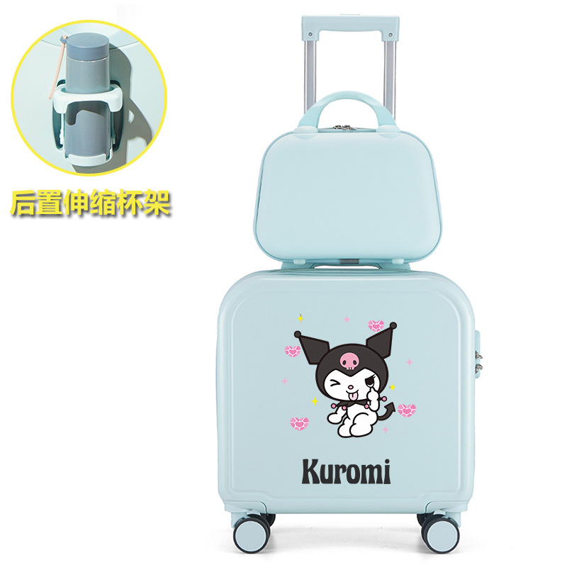 컵 홀더가 인쇄 된 학생 여행 암호 상자가있는 새로운 귀여운 만화 수하물 18 인치 보딩 트롤리 케이스