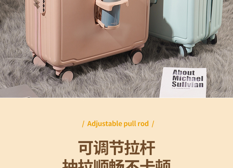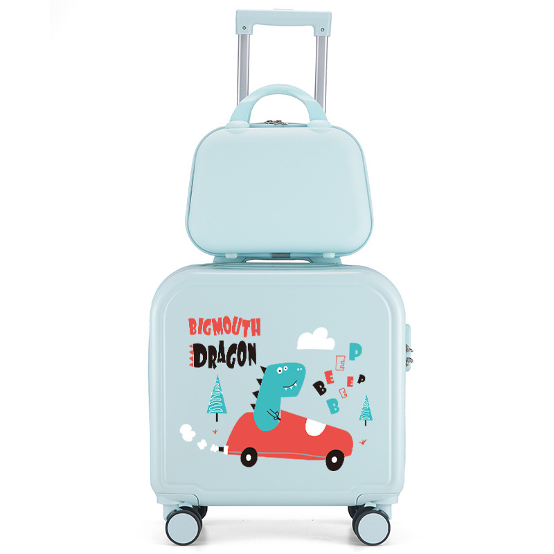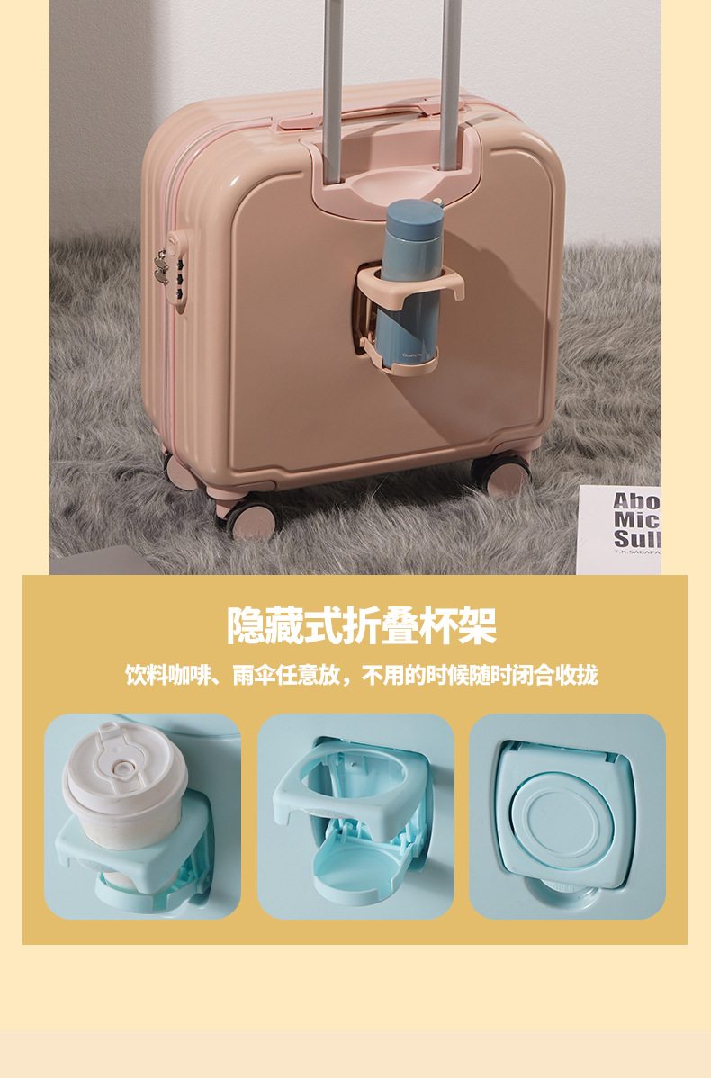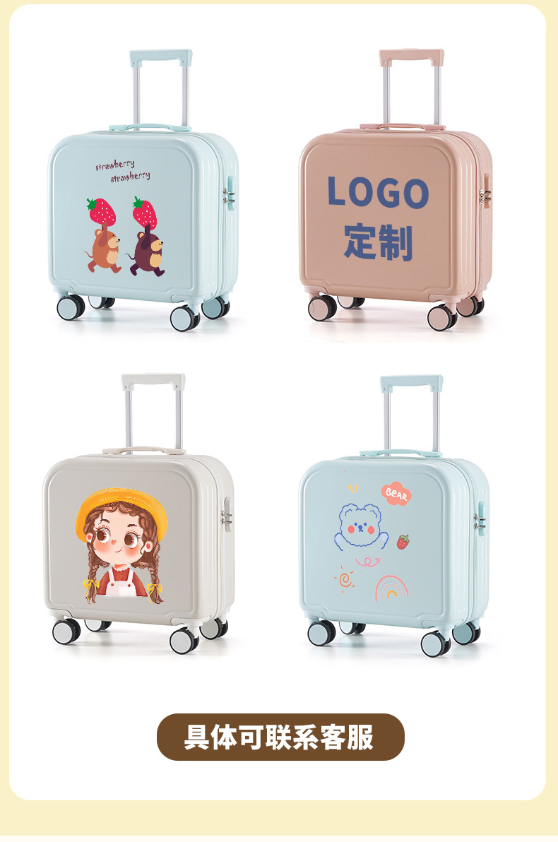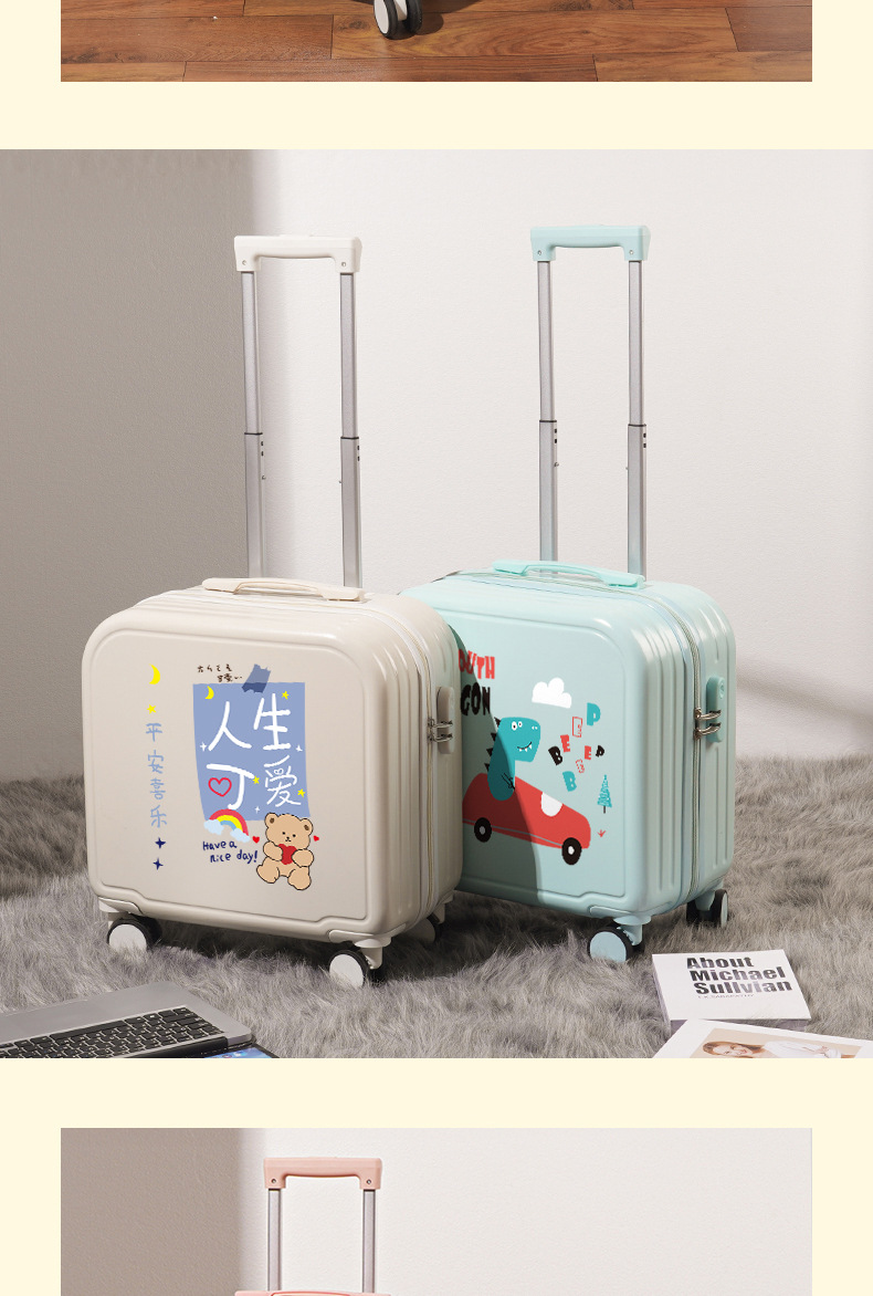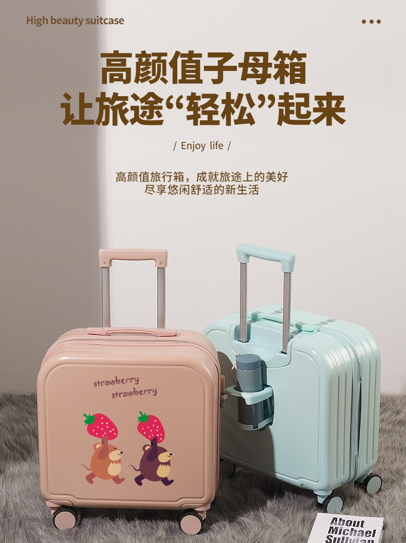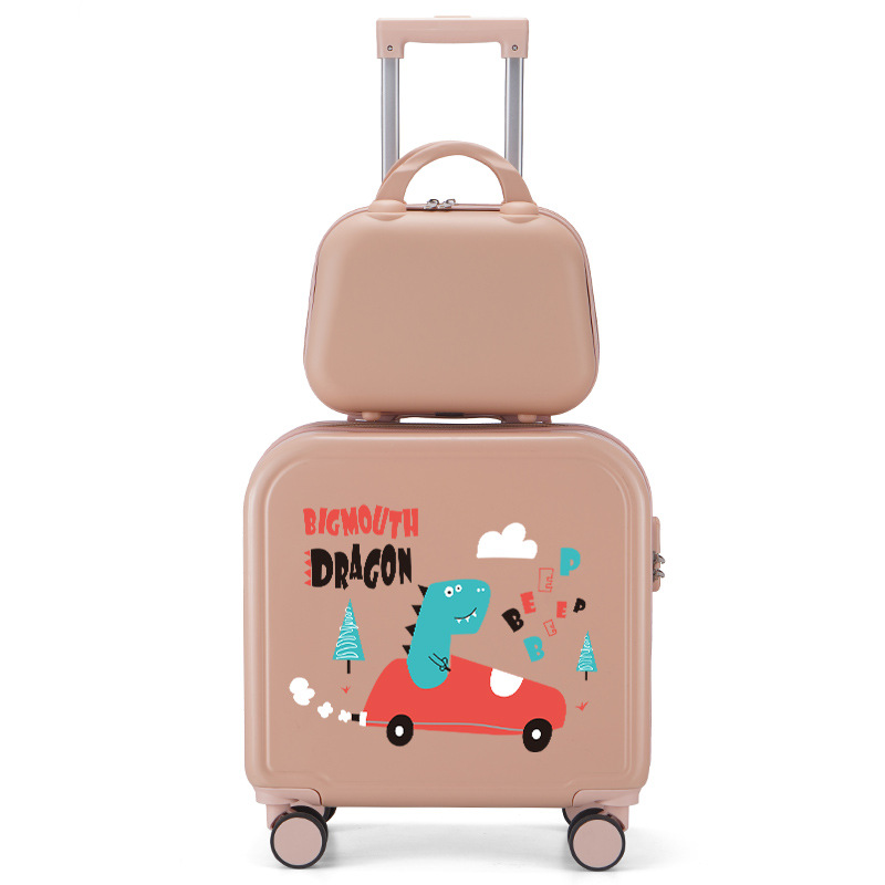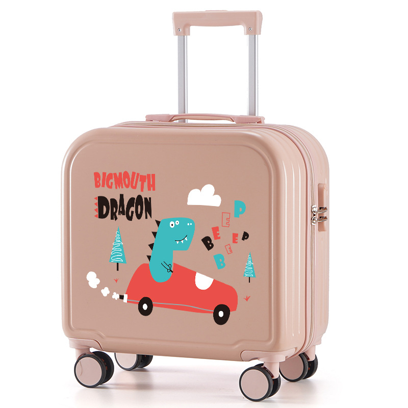 컵 홀더가 인쇄 된 학생 여행 암호 상자가있는 새로운 귀여운 만화 수하물 18 인치 보딩 트롤리 케이스