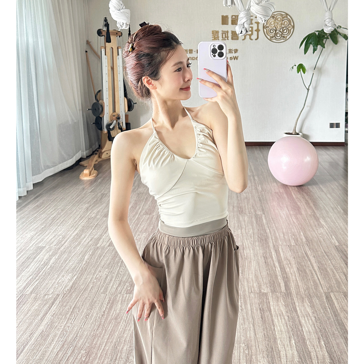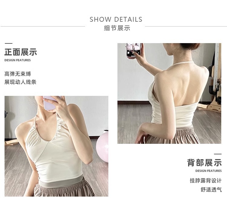 슬림 숄더 스트랩 홀터 요가 브래지어 가슴 패드 스포츠 캐미솔 충격 방지 민소매 뷰티 백 피트니스 탑