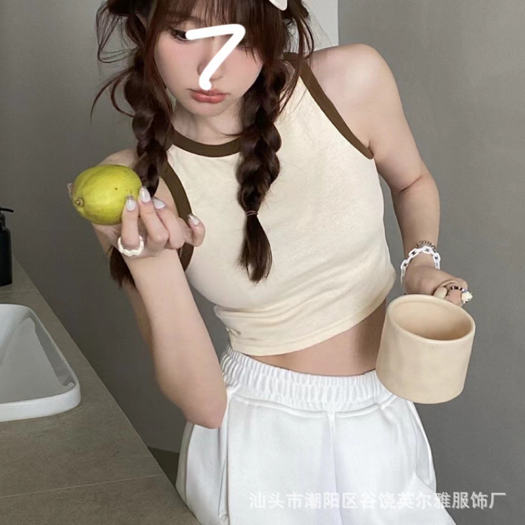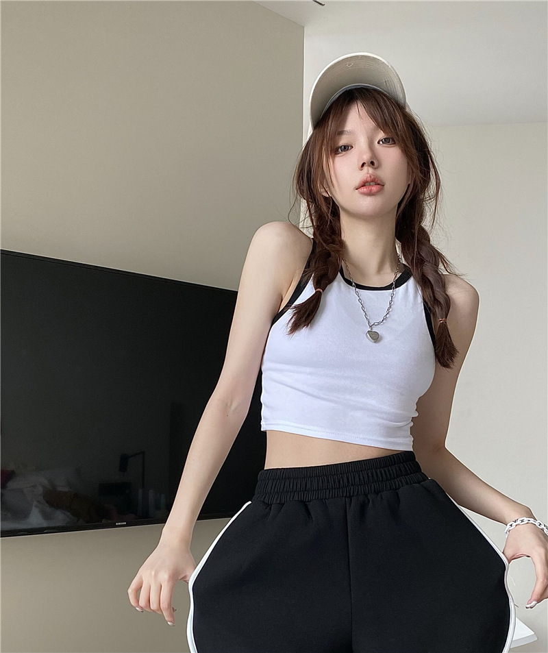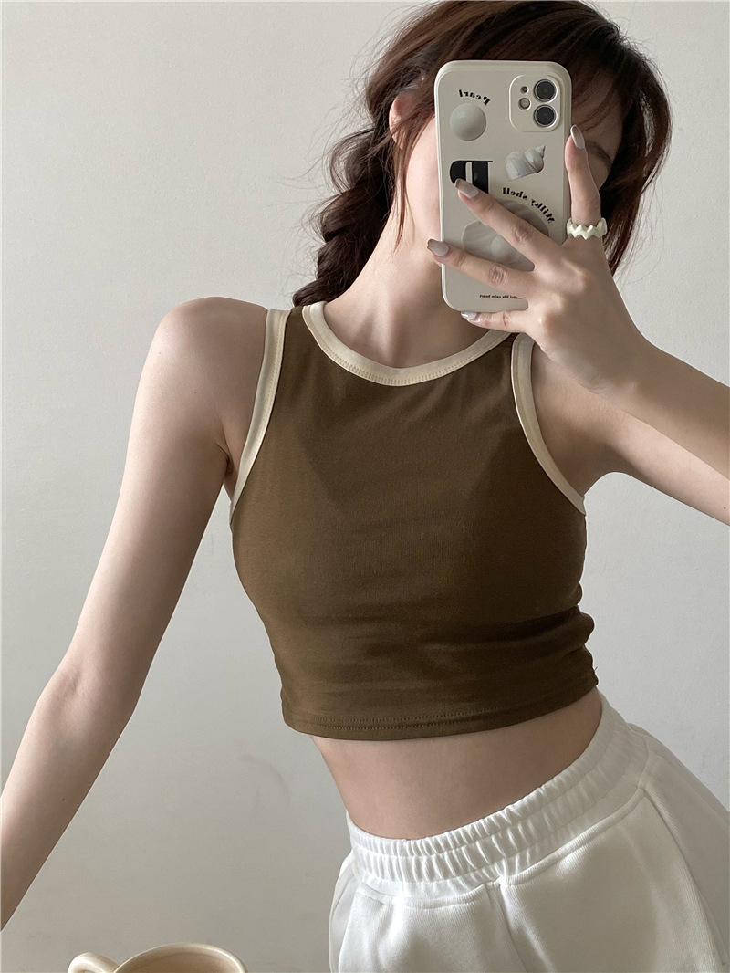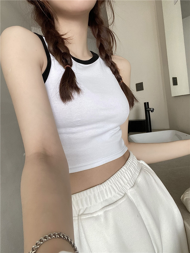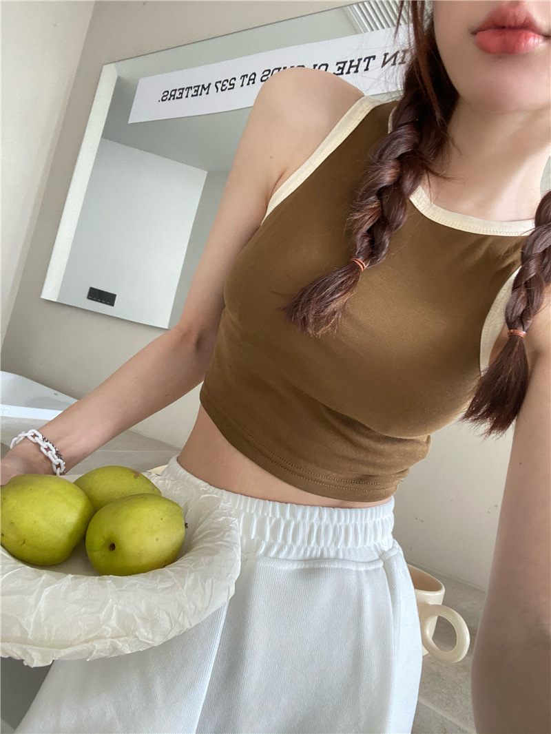 봄과 여름 대비 색상 민소매 조끼 겉옷 단색 슬링 이너웨어 스포츠 짧은 탑베이스 셔츠 아름다운 다시 감싸 가슴 여성스토어 가기