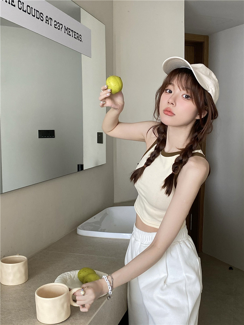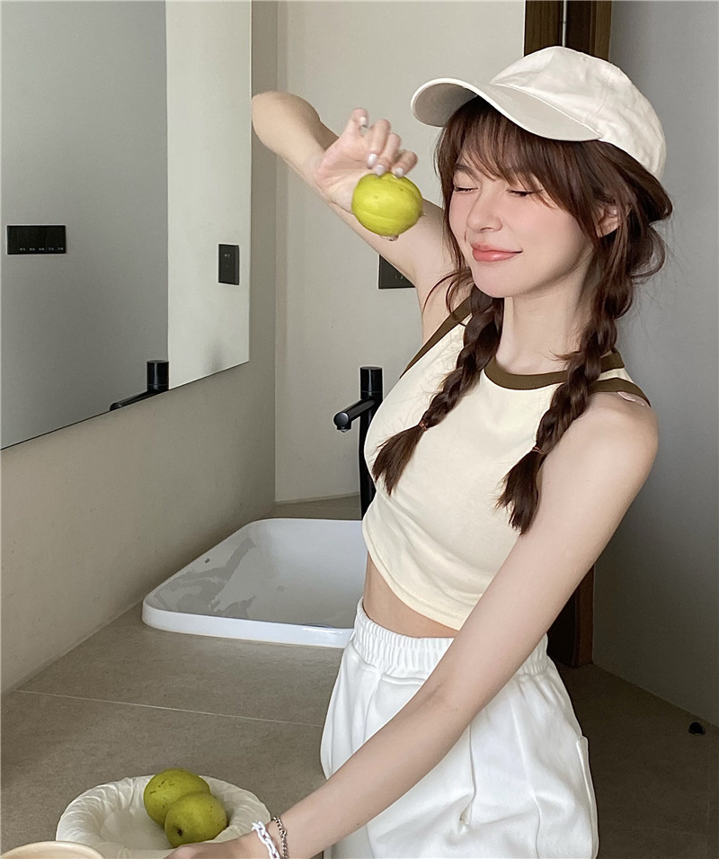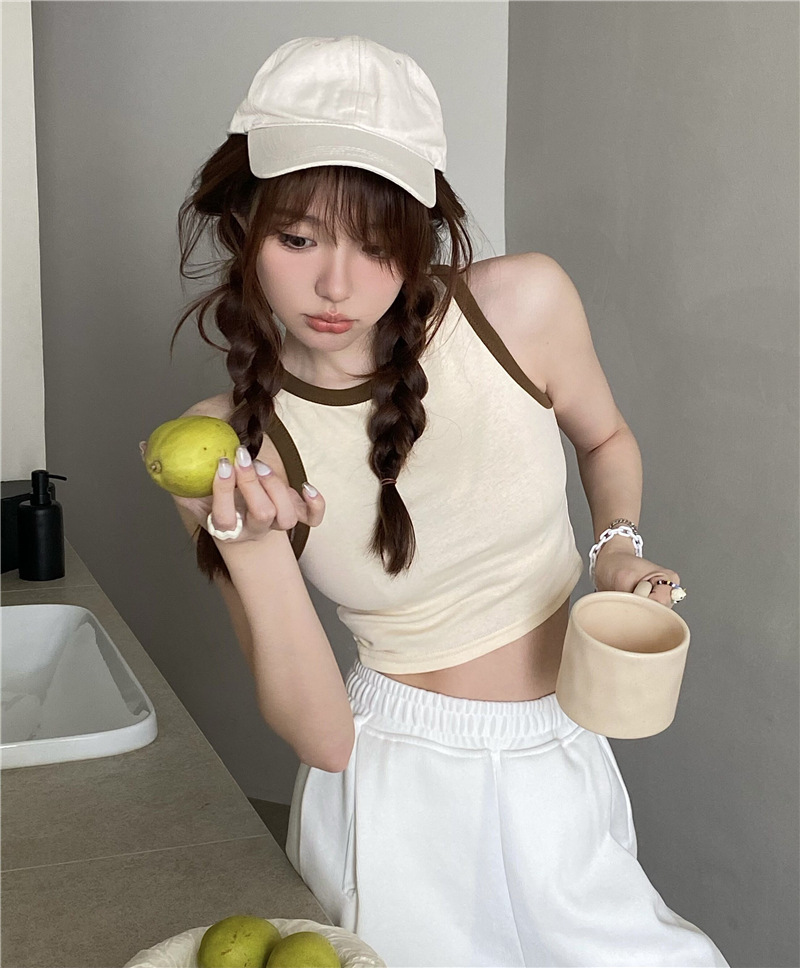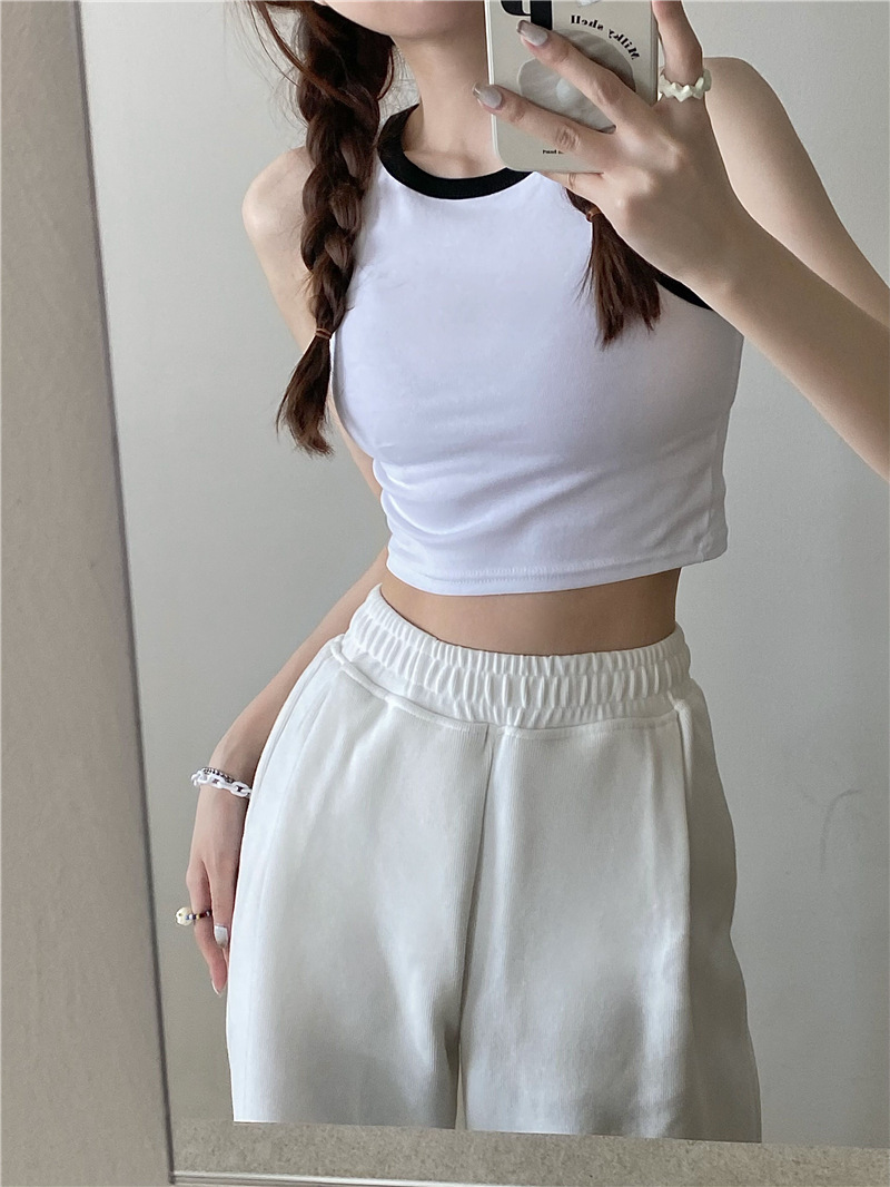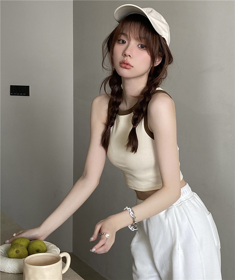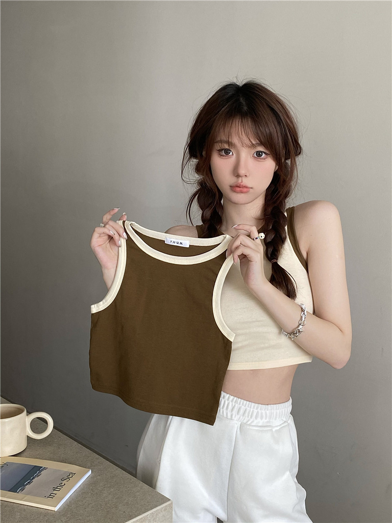 봄과 여름 대비 색상 민소매 조끼 겉옷 단색 슬링 이너웨어 스포츠 짧은 탑베이스 셔츠 아름다운 다시 감싸 가슴 여성스토어 가기