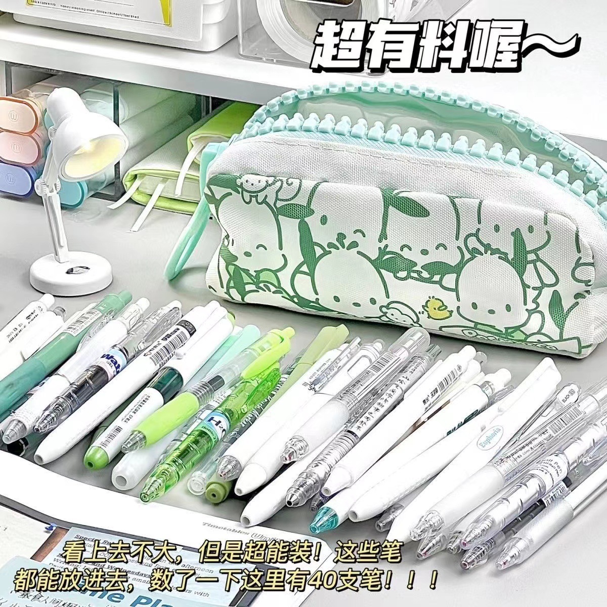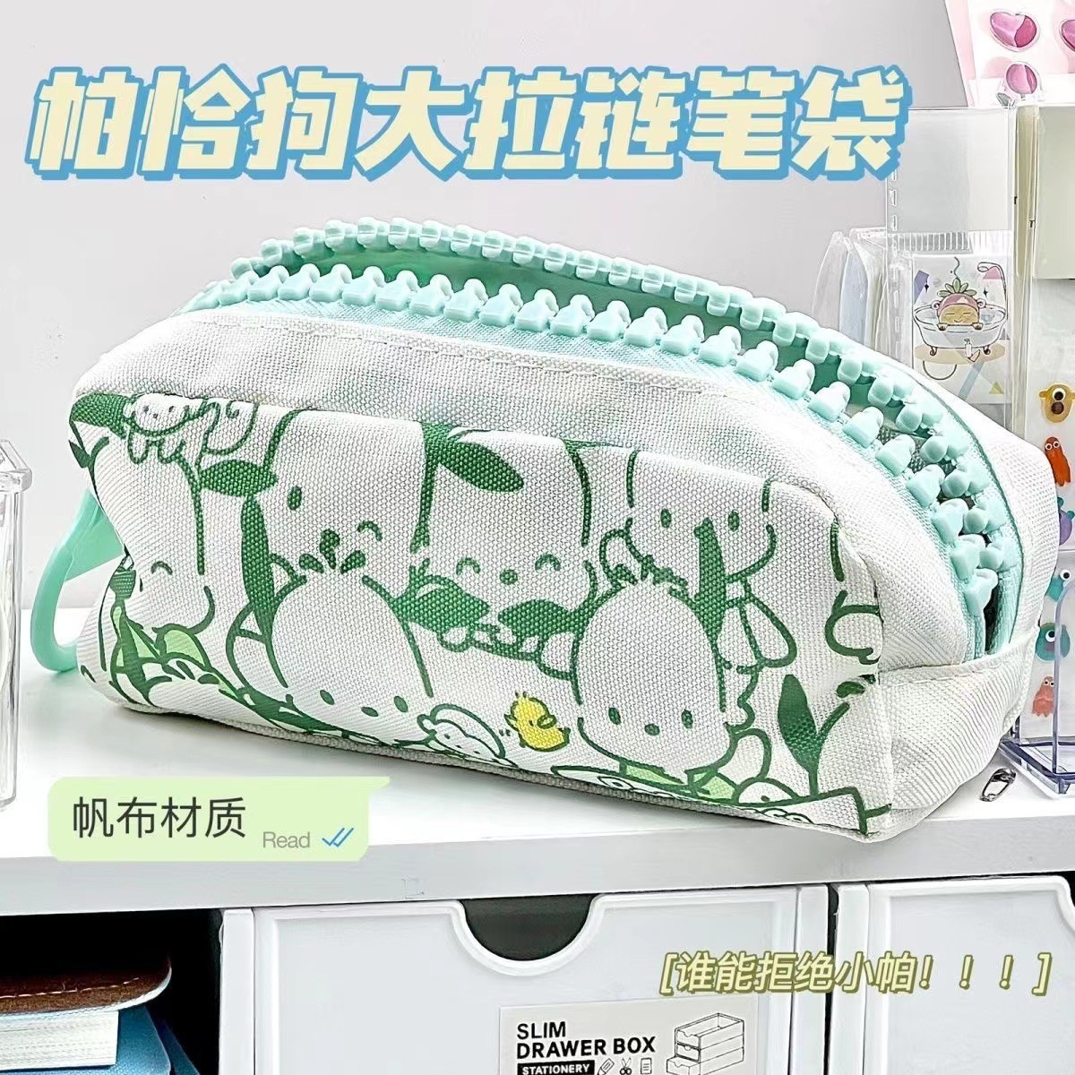 Sanrio Pacha 개 큰 지퍼 연필 케이스 학생 높은 찾고 대용량 만화 귀여운 문구 보관 연필 가방