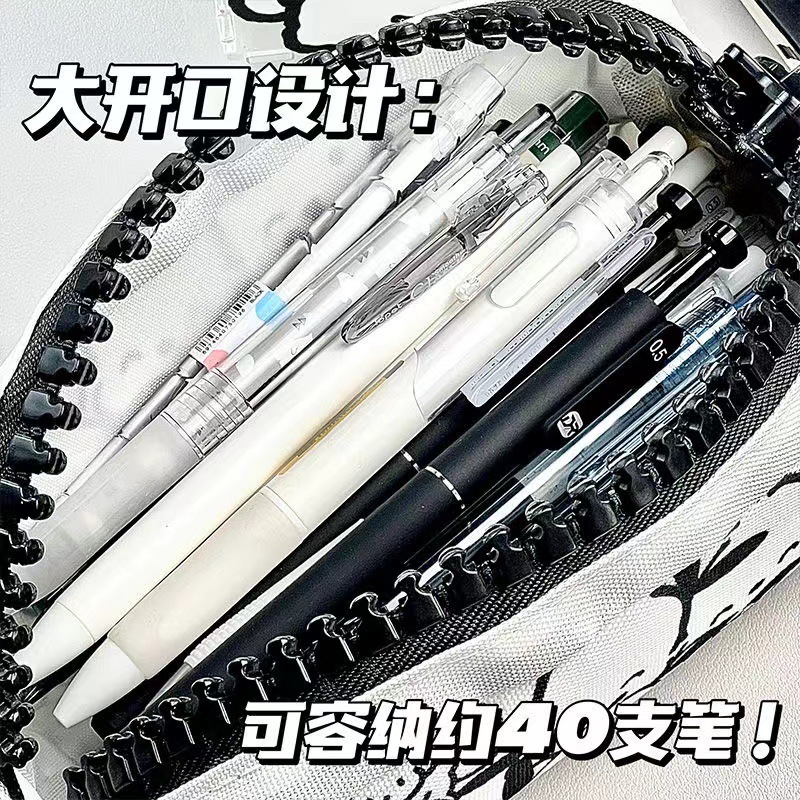 • 블랙-파차 큰 지퍼 연필 케이스