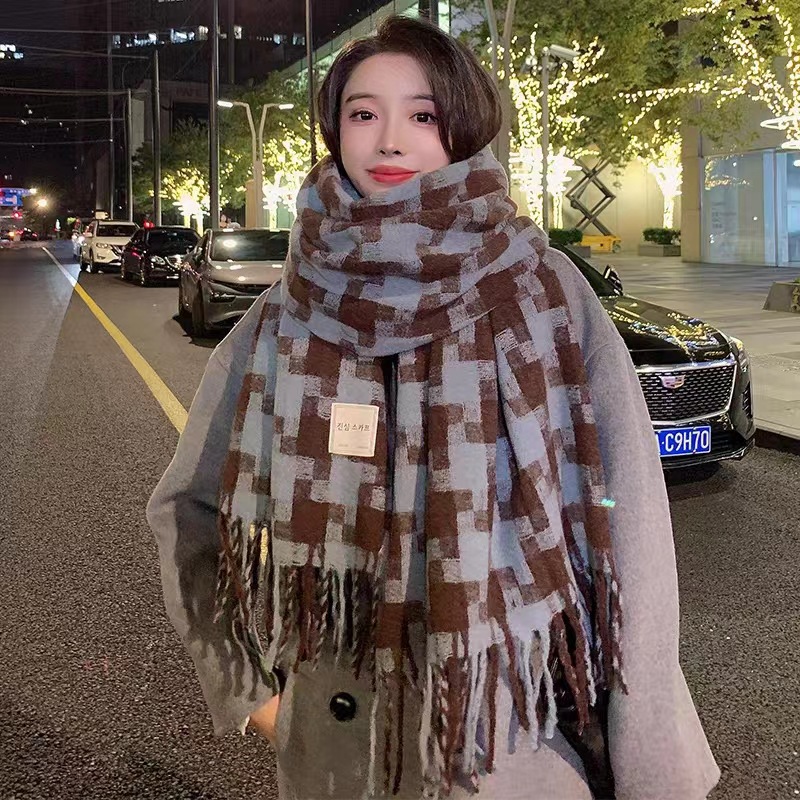 부드러운 밀랍 질감! 일본 복고풍 스카프 숄 가을과 겨울 모든 매치 인터넷-유명한 흑백 Houndstooth 따뜻한 스카프