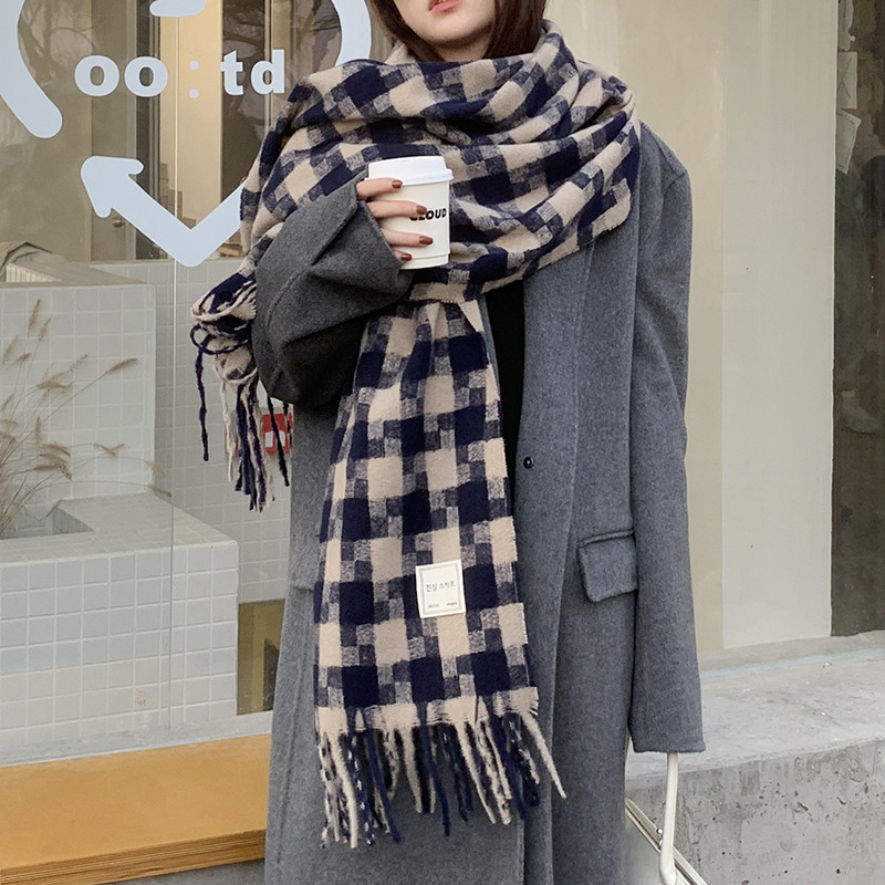 부드러운 밀랍 질감! 일본 복고풍 스카프 숄 가을과 겨울 모든 매치 인터넷-유명한 흑백 Houndstooth 따뜻한 스카프스토어 가기