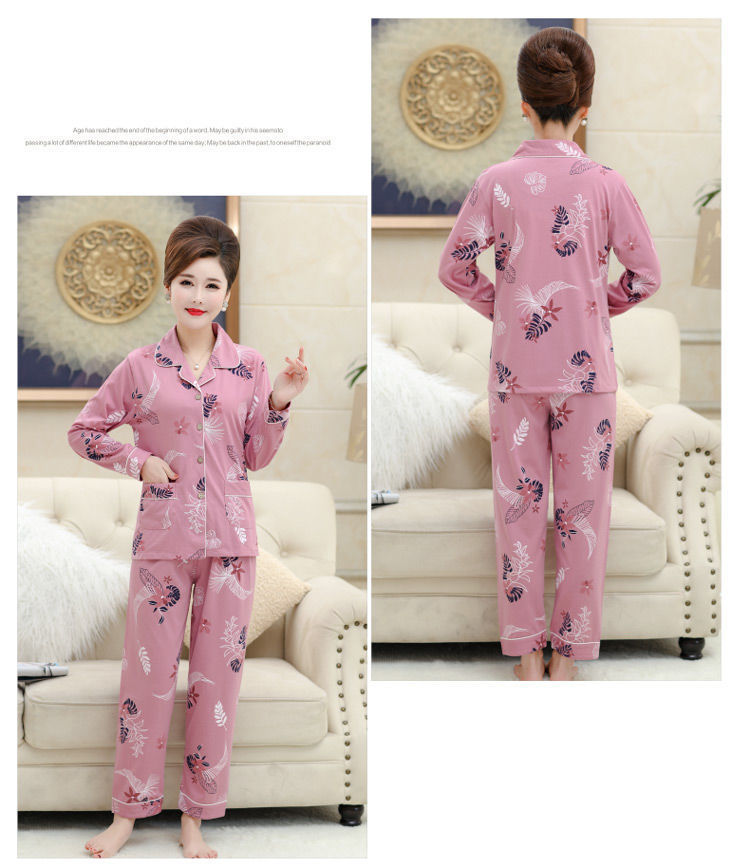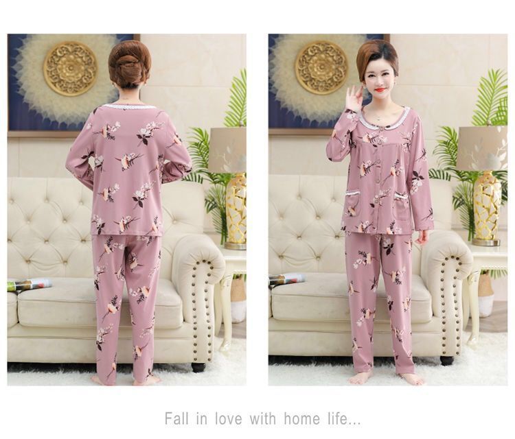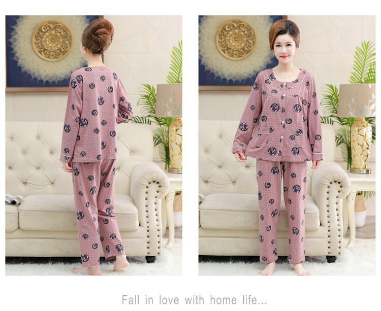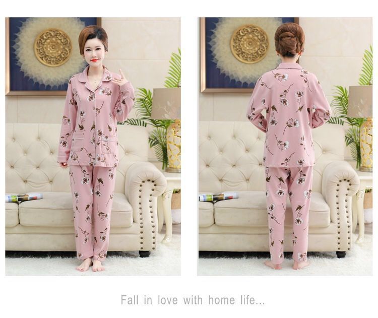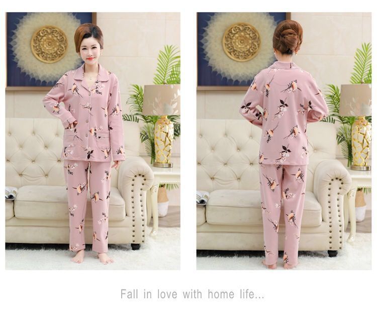 면 100 잠옷 여성의 가을과 여름 긴팔 가디건 플러스 사이즈 중년 및 노인 어머니는 외부 달 옷을 입을 수 있습니다 세트