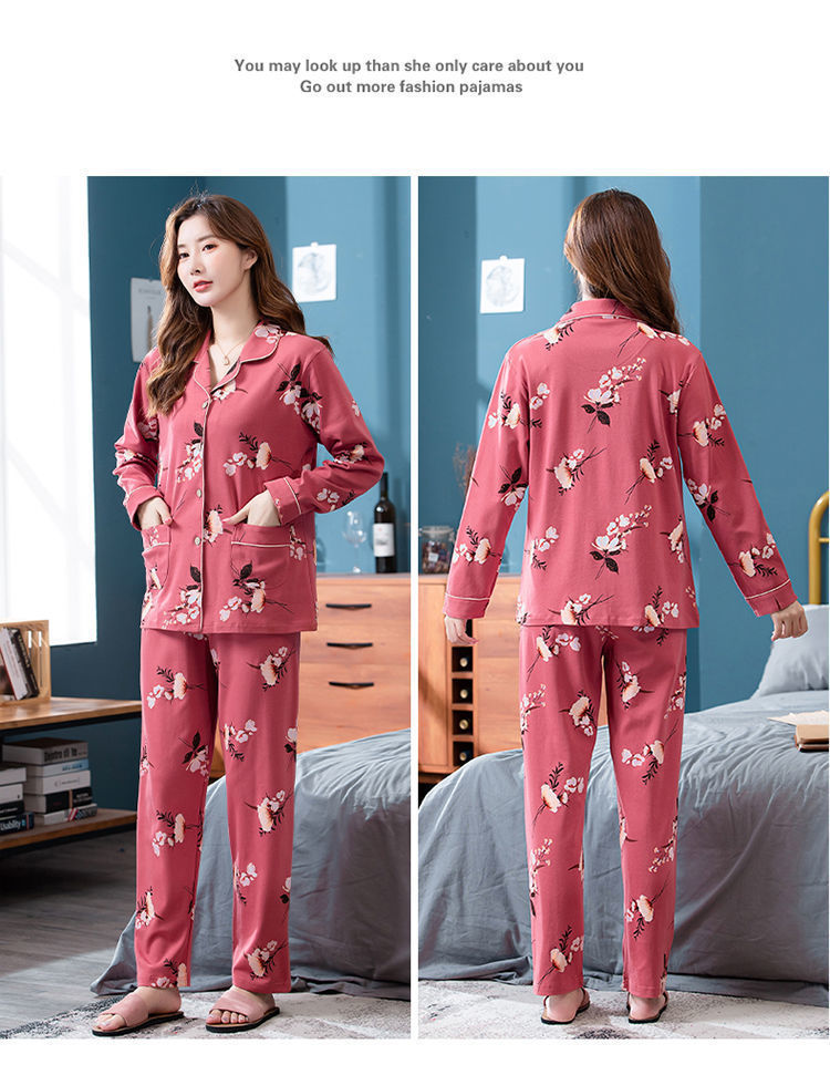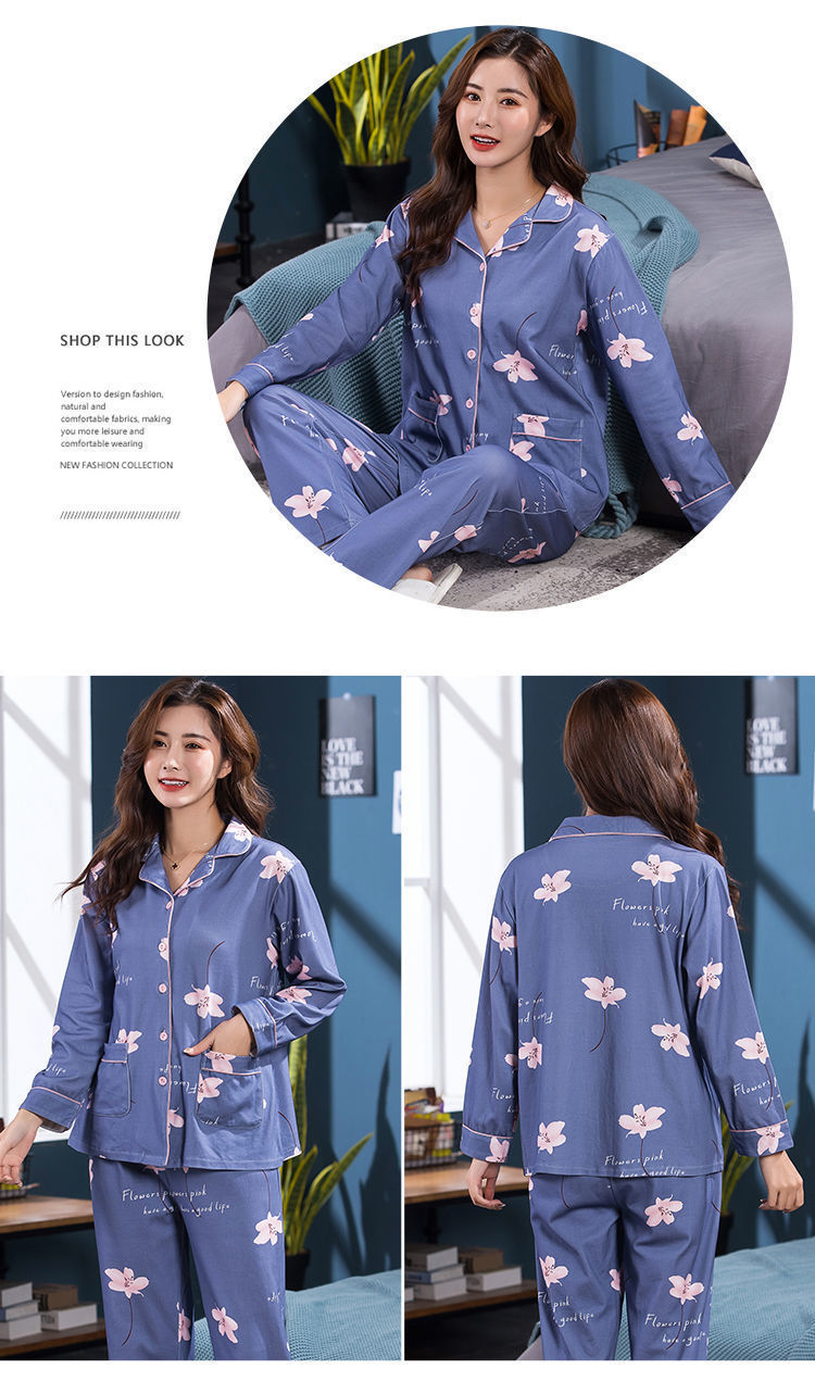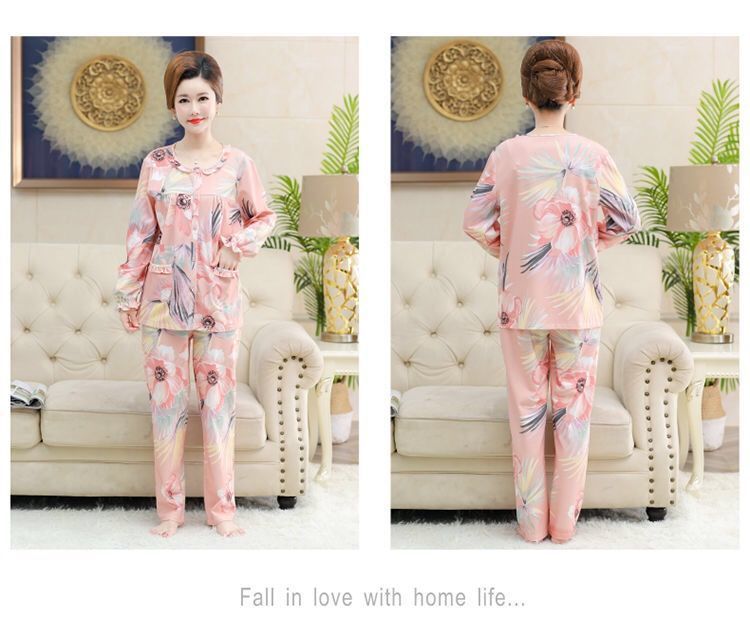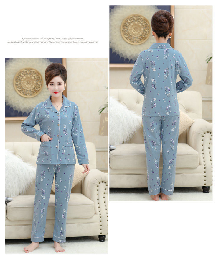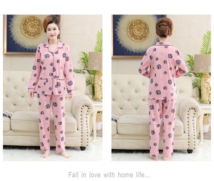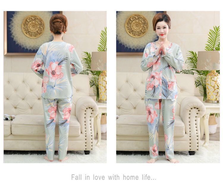 면 100 잠옷 여성의 가을과 여름 긴팔 가디건 플러스 사이즈 중년 및 노인 어머니는 외부 달 옷을 입을 수 있습니다 세트스토어 가기