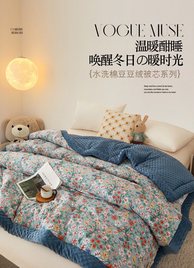 새로운 클래스 A 세탁기로 세탁 가능한 면 콩 이불 학생 봄, 가을 이불 피부 친화적인 면 콩 이불 두꺼운 겨울 이불 콩 이불