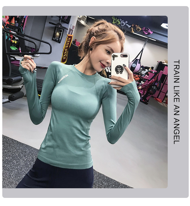 스트레치 타이트 피트니스 의류 긴팔 티셔츠 봄과 여름 러닝 트레이닝 의류 겉옷 베이스 레이어 셔츠 스포츠 요가 탑스토어 가기