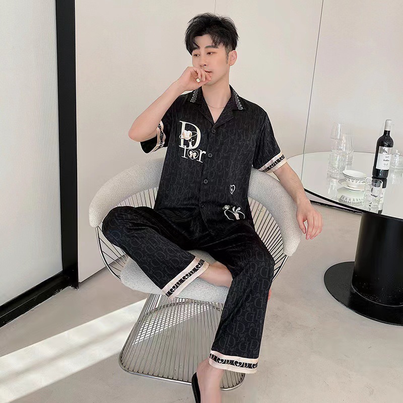 커플 잠옷 여자의 여름 새로운 얼음 실크 짧은 소매 반바지 세트 봄과 가을 라이브 플러스 사이즈 남자의 가정 의류 도매스토어 가기