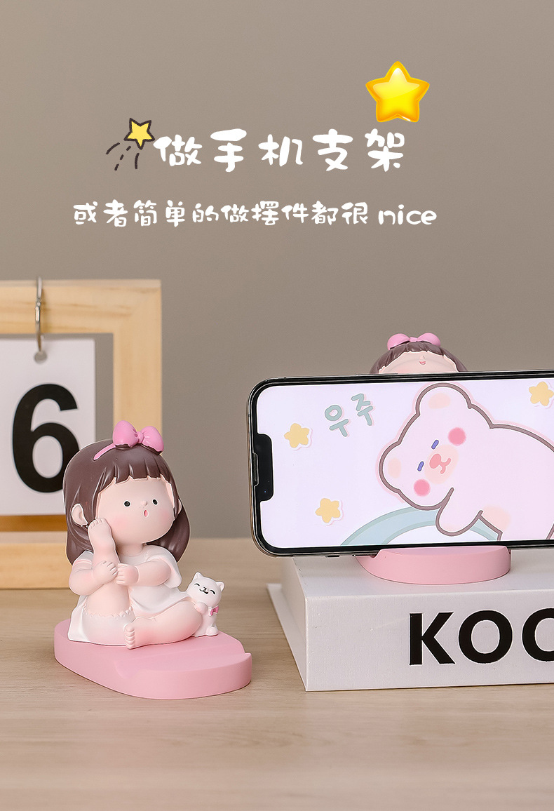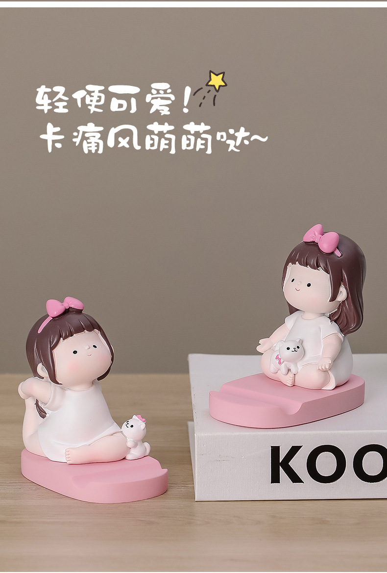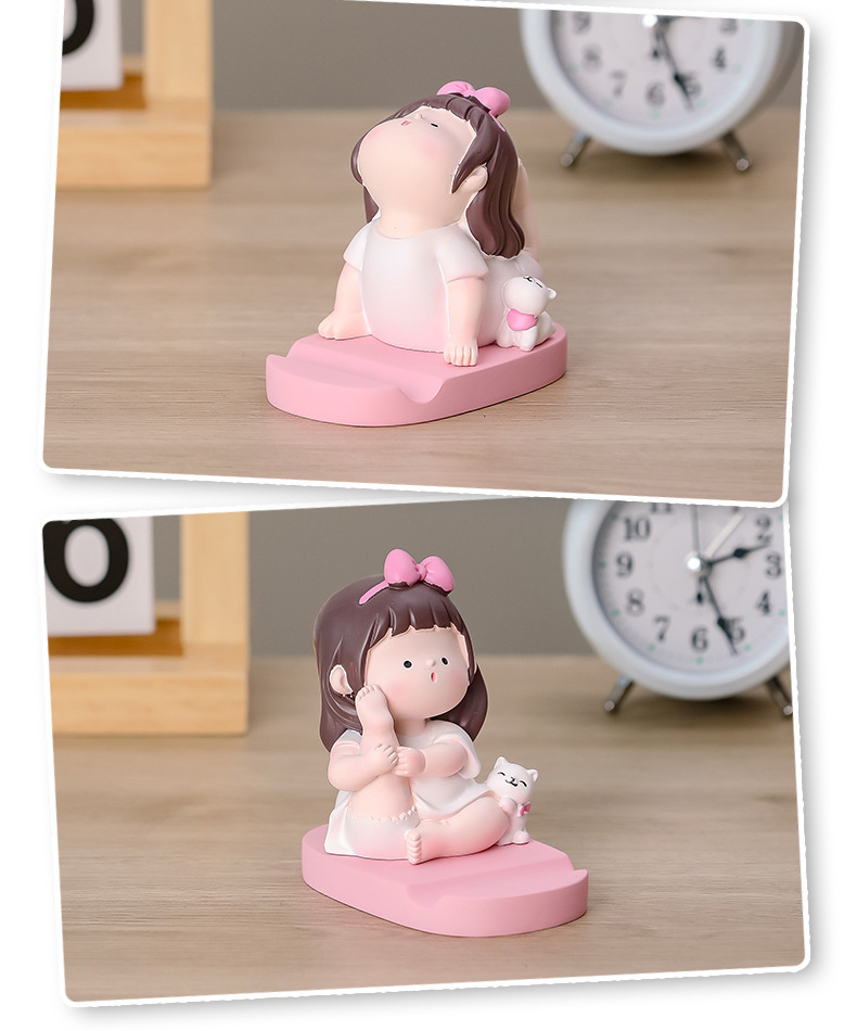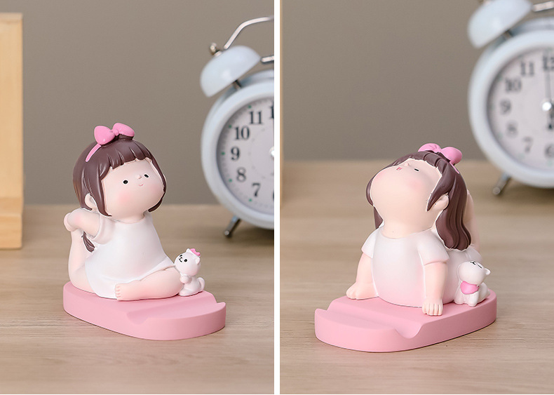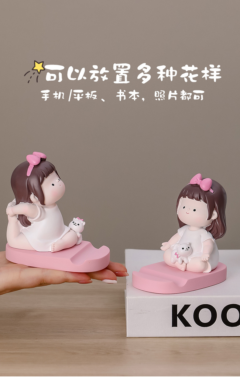 귀여운 요가 소녀 휴대 전화 브래킷 드라마 유물 데스크탑 장식품 수지 장식 태블릿 휴대 전화 랙을 쫓는 게으른 남자