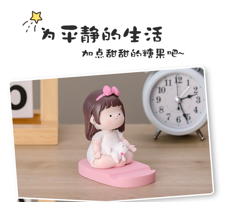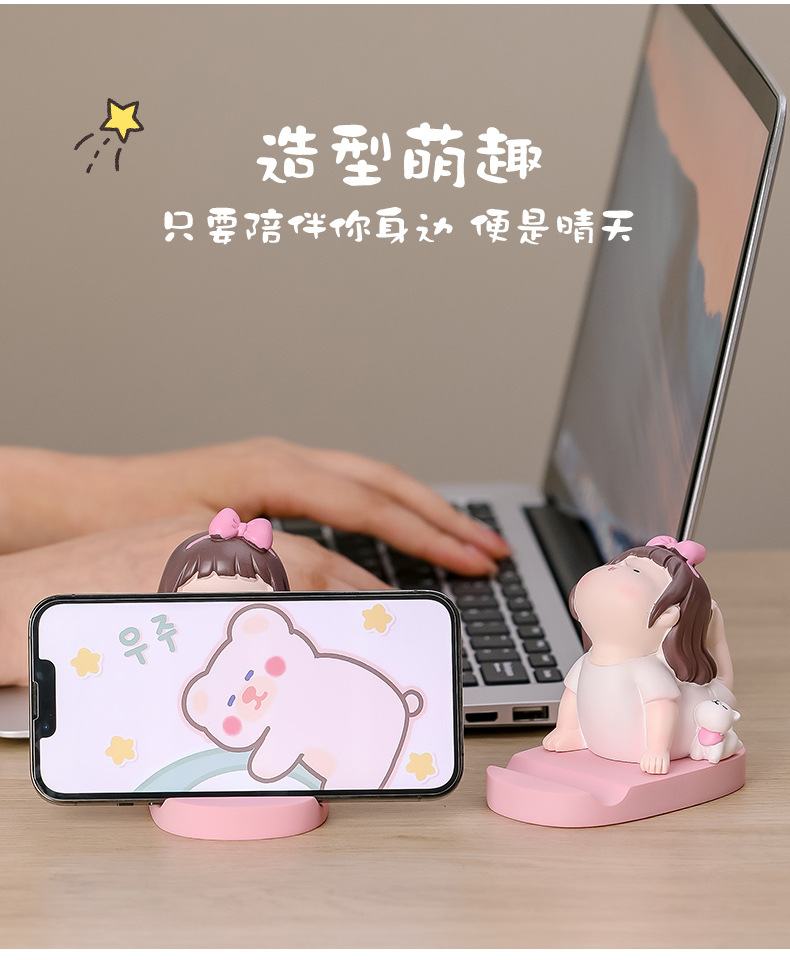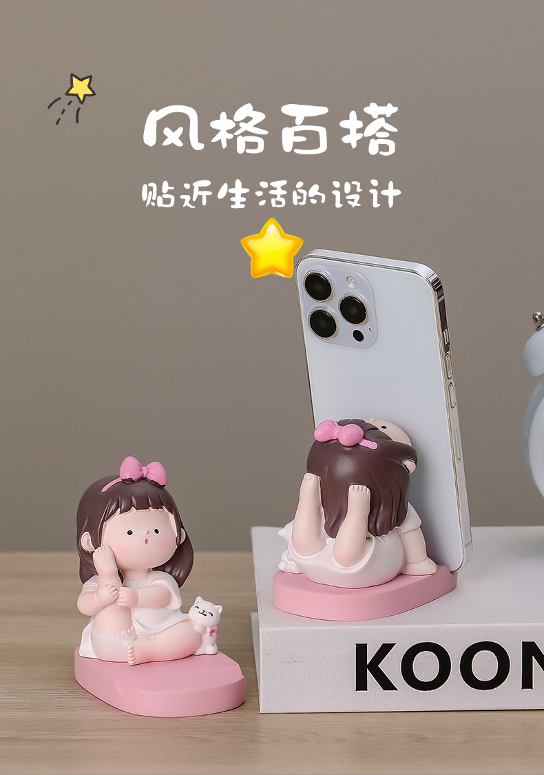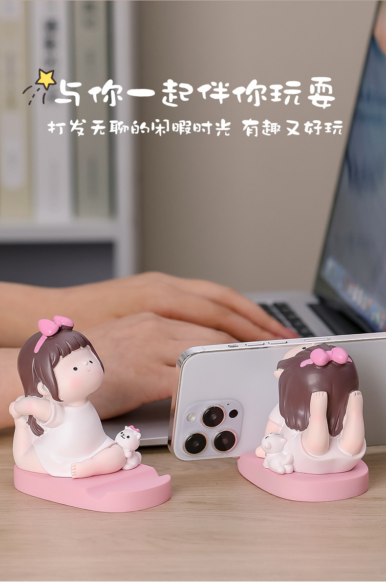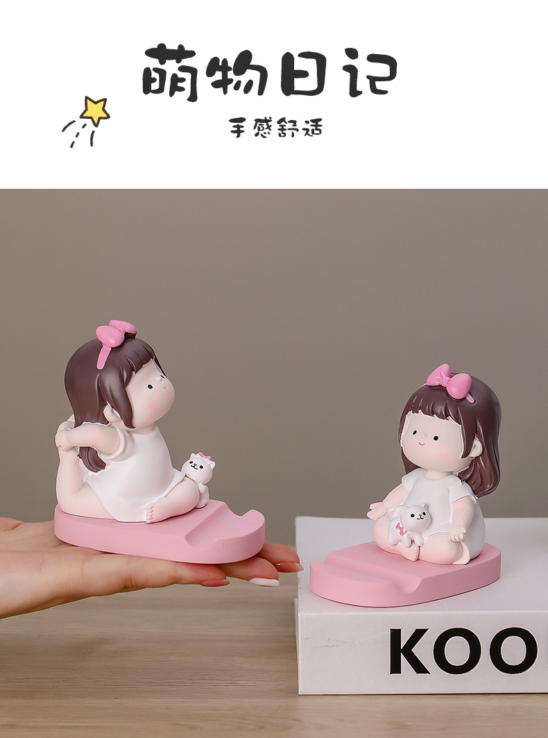 귀여운 요가 소녀 휴대 전화 브래킷 드라마 유물 데스크탑 장식품 수지 장식 태블릿 휴대 전화 랙을 쫓는 게으른 남자