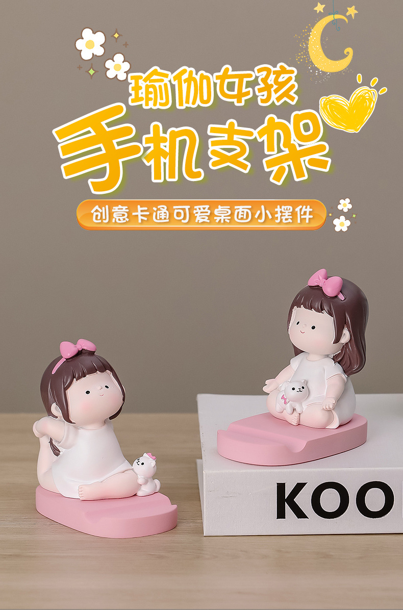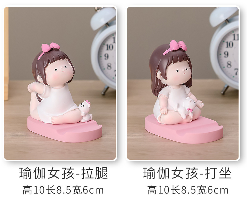 귀여운 요가 소녀 휴대 전화 브래킷 드라마 유물 데스크탑 장식품 수지 장식 태블릿 휴대 전화 랙을 쫓는 게으른 남자스토어 가기