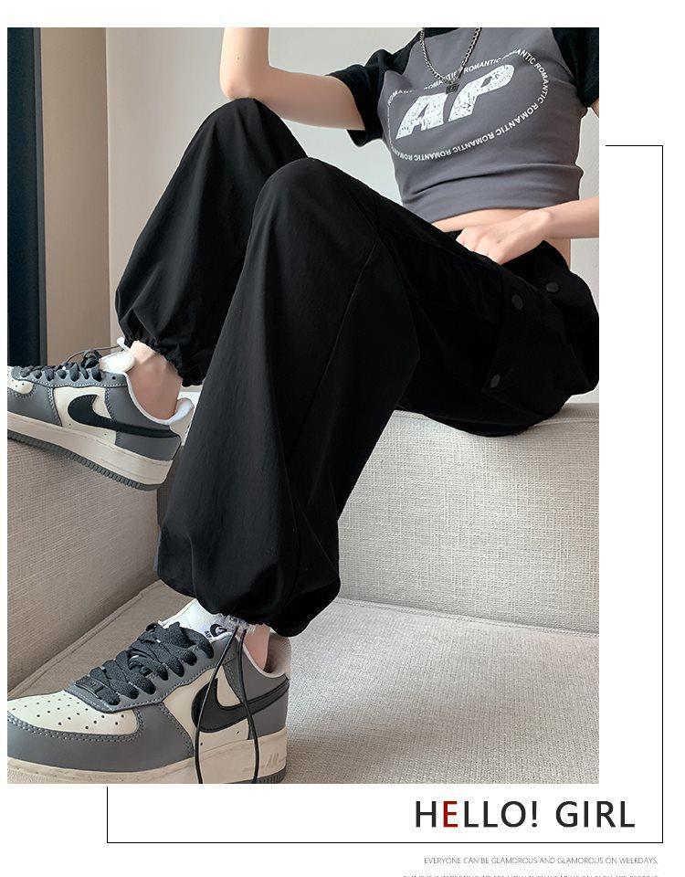 미국 레트로 카고 바지 여성용 여름 얇은 작은 하이 웨이스트 슬리밍 스트레이트 다리 캐주얼 스트레이트 다리 와이드 레그 팬츠