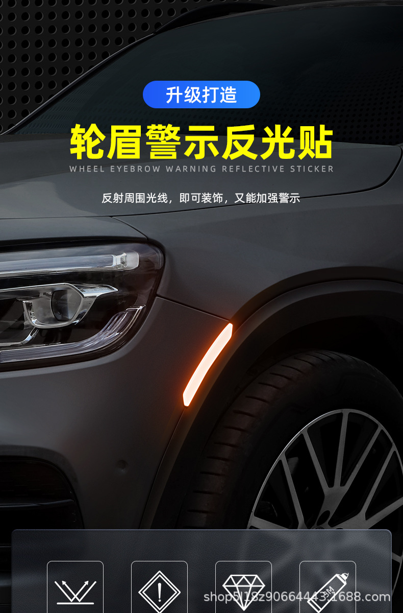자동차 바퀴 눈썹 반사 스티커 빛나는 아름다움 게이지 범퍼 스티커 바디 스크래치 쉴드 경고 성격 장식 스트립