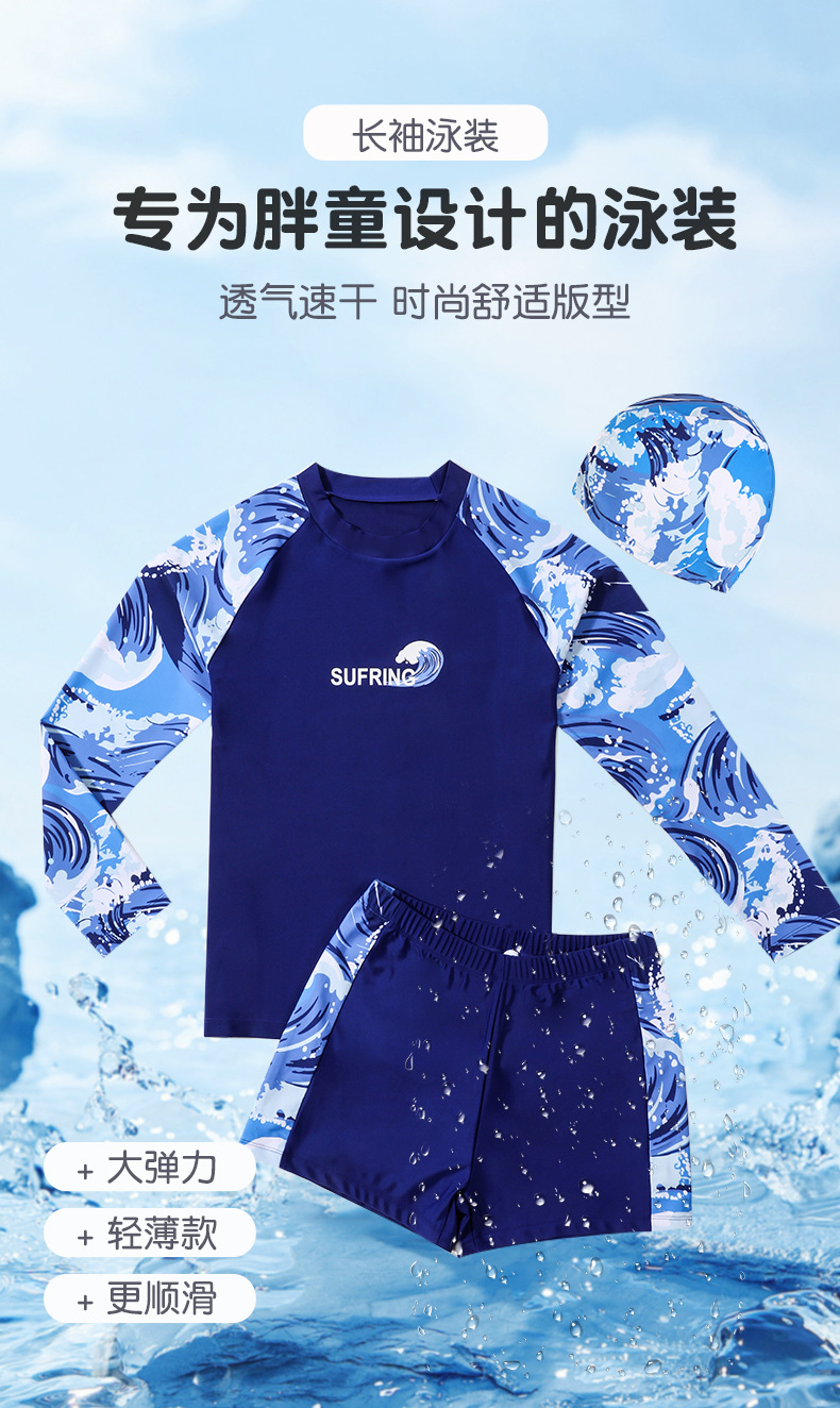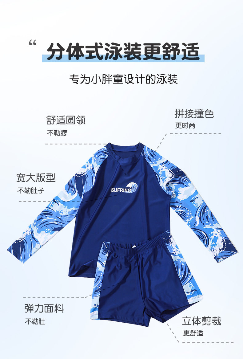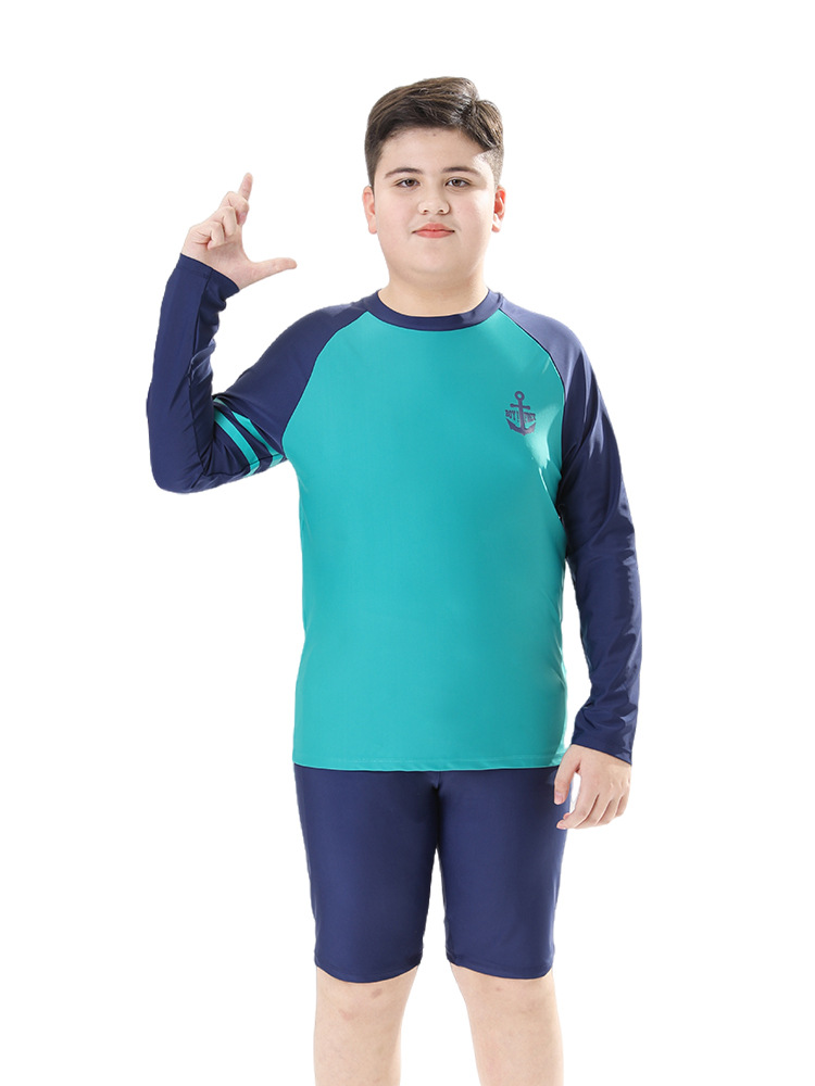 소년 수영복 긴팔 분할 빠른 건조 긴팔 수영복 선 스크린 빠른 건조 큰 어린이 느슨한 플러스 사이즈 수영 세트