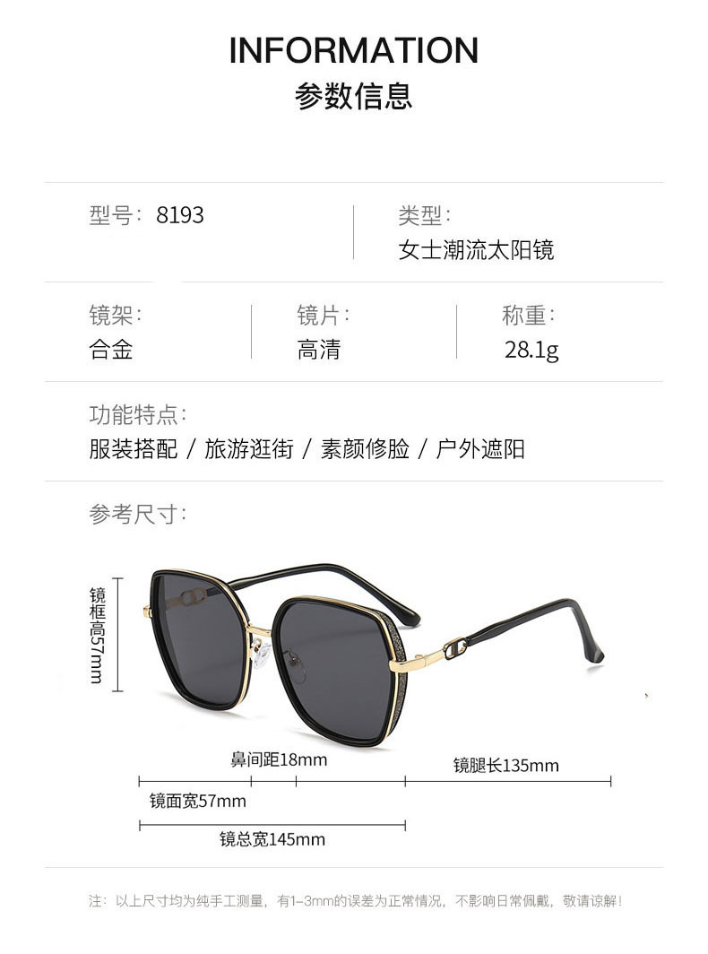 2023 새로운 인터넷 연예인 거리 사진 고급 편광 선글라스 여성용 자외선 차단제 거리 사진 패션 오목한 선글라스 8193
