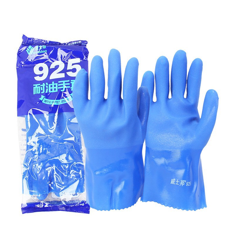 무료 배송 Chunlei Waibang 925 플라스틱 담근 고무 장갑 미끄럼 방지 두꺼운 내유성 및 알칼리 저항 노동 보호 장갑