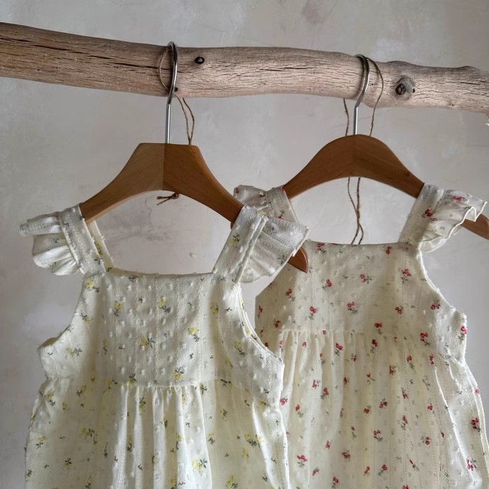아기 소녀의 순면 꽃 서양 스타일 플라잉 슬리브 등산 착용 한국 스타일 초박형 통기성 달콤한 유행 점프 수트스토어 가기