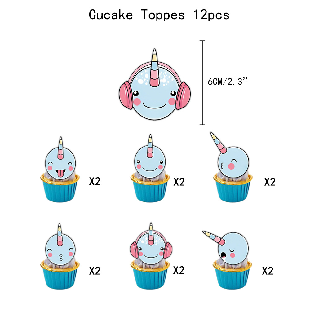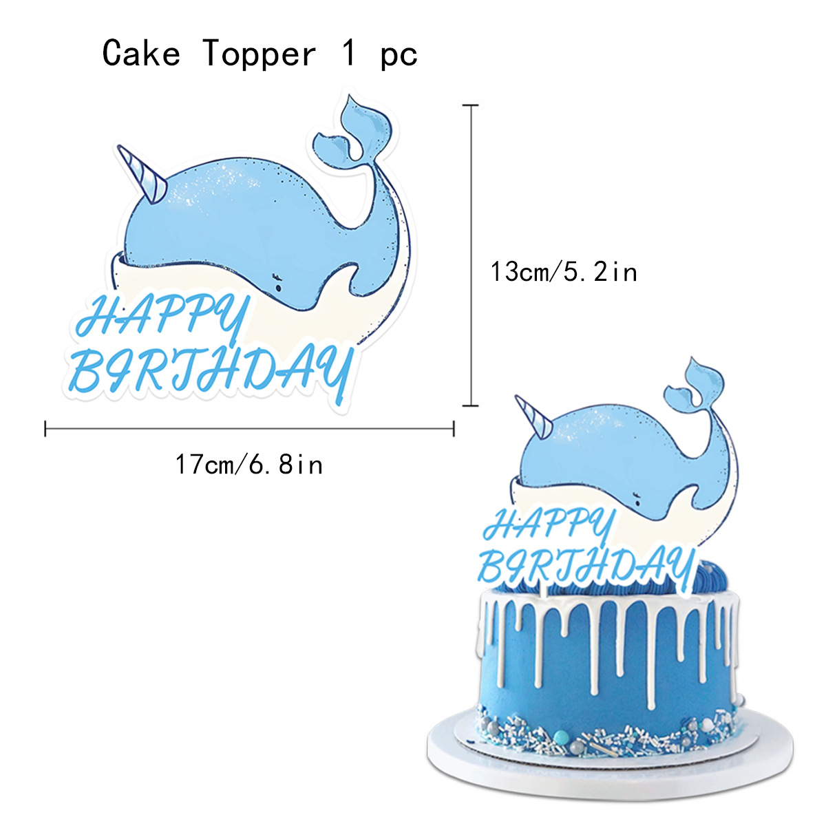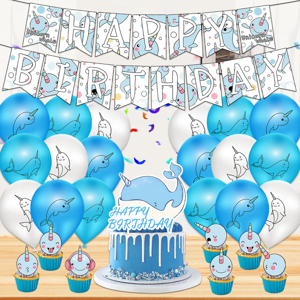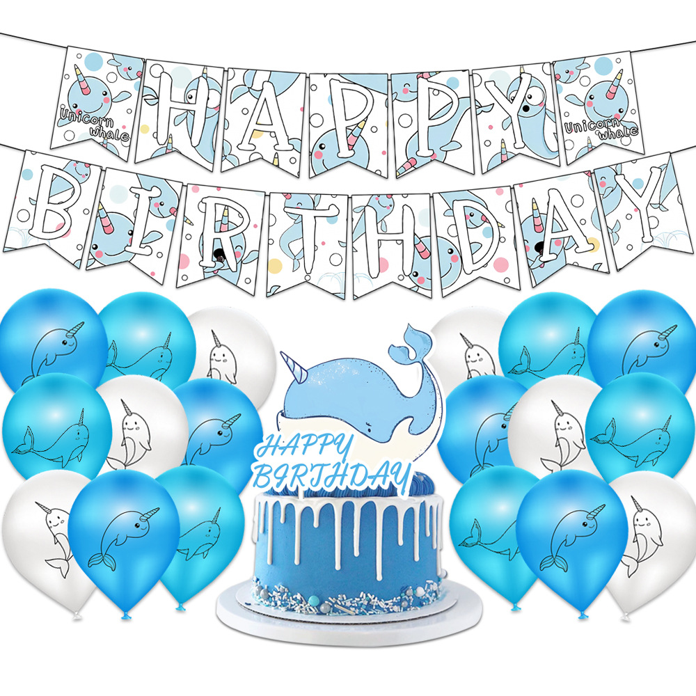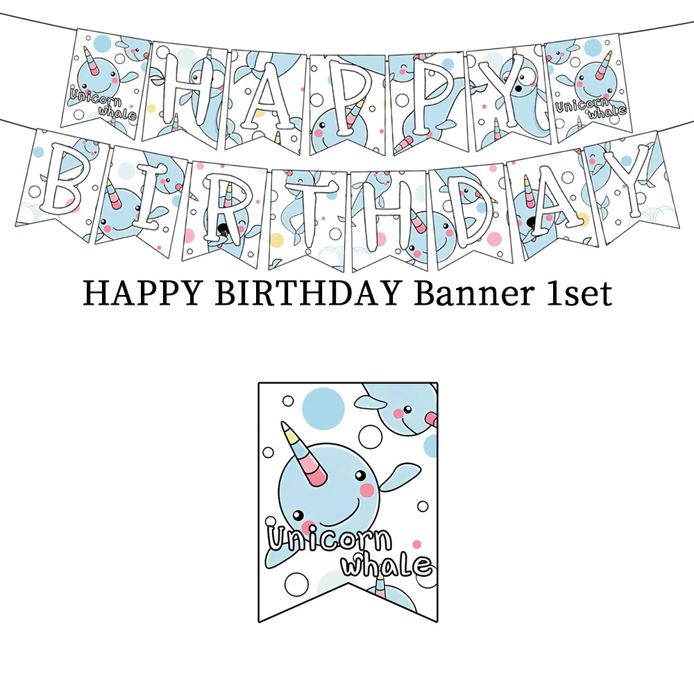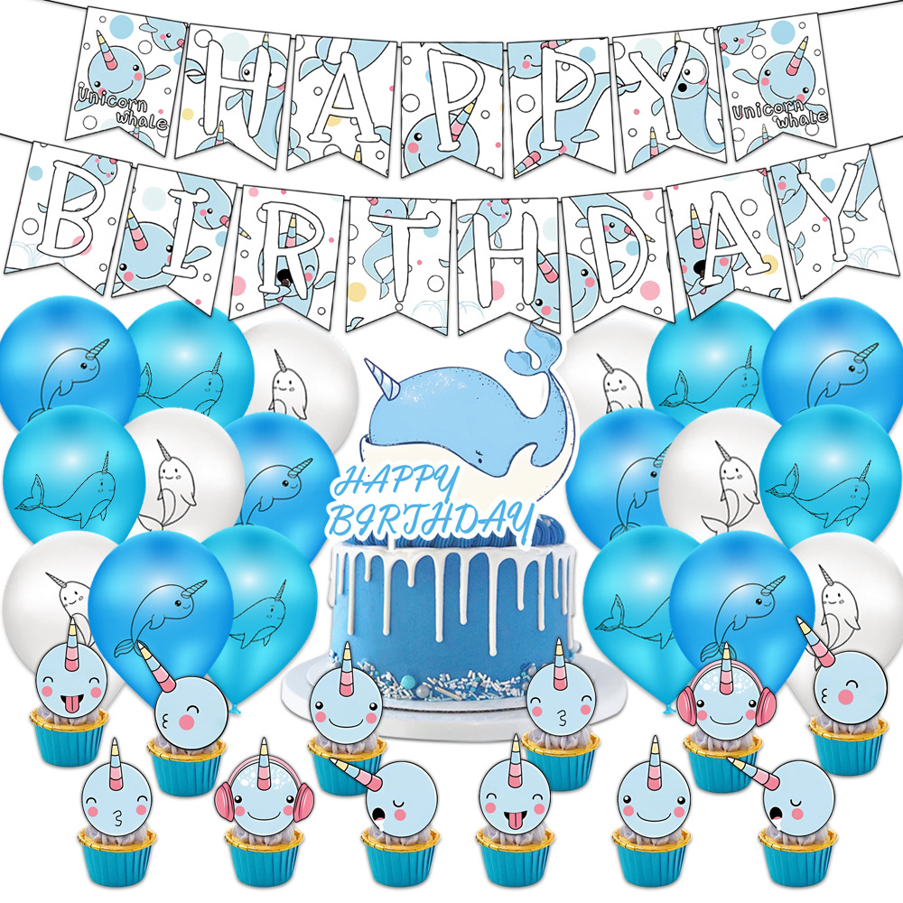 새로운 일각고래 테마 파티 세트 테마 어린이 생일 파티 장식 생일 플래그 케이크 카드