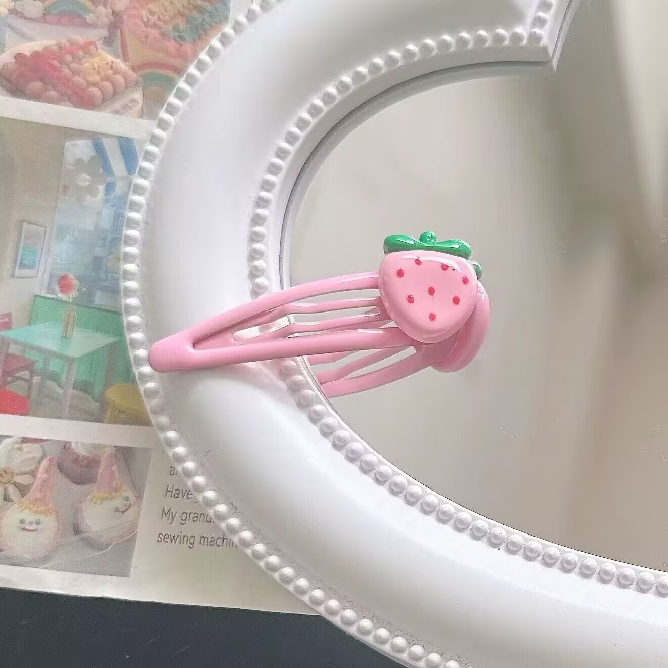 부드러운 핑크 귀여운 달콤한 딸기 머리핀 작은 소녀 과일 사이드 클립 소녀 심장 패션 학생 오리 빌 클립 헤어 액세서리