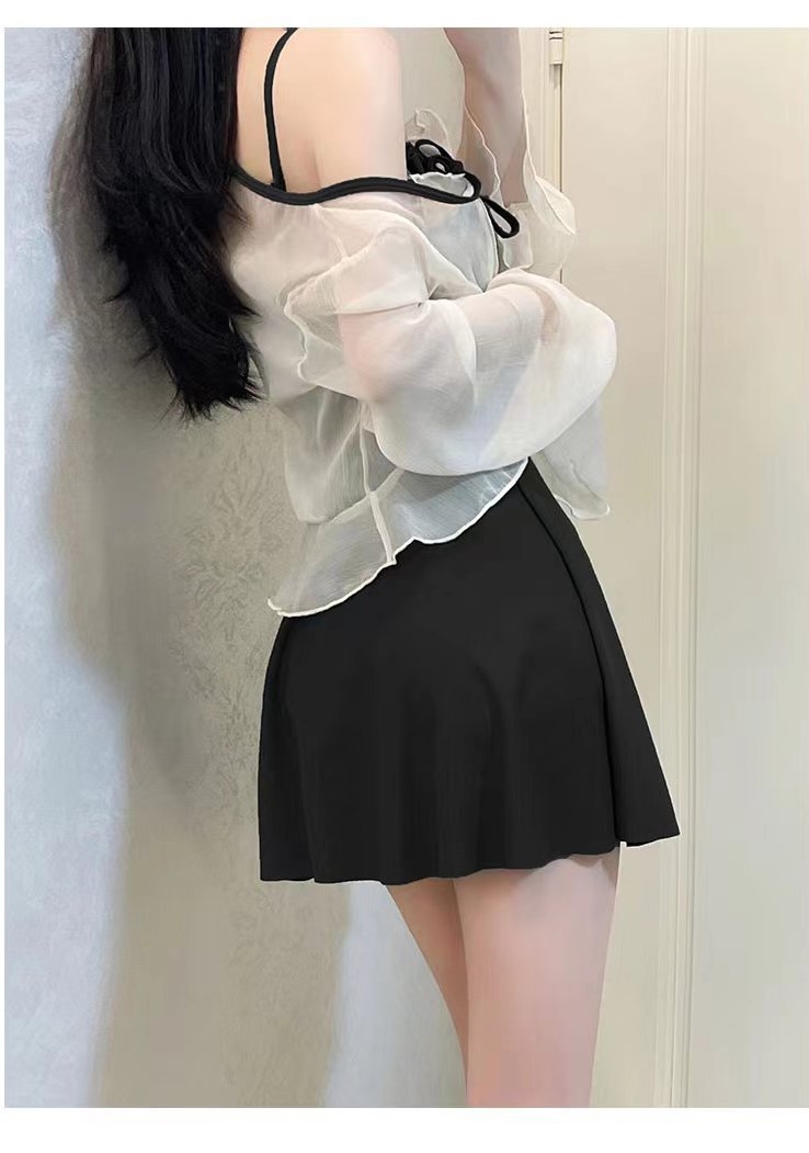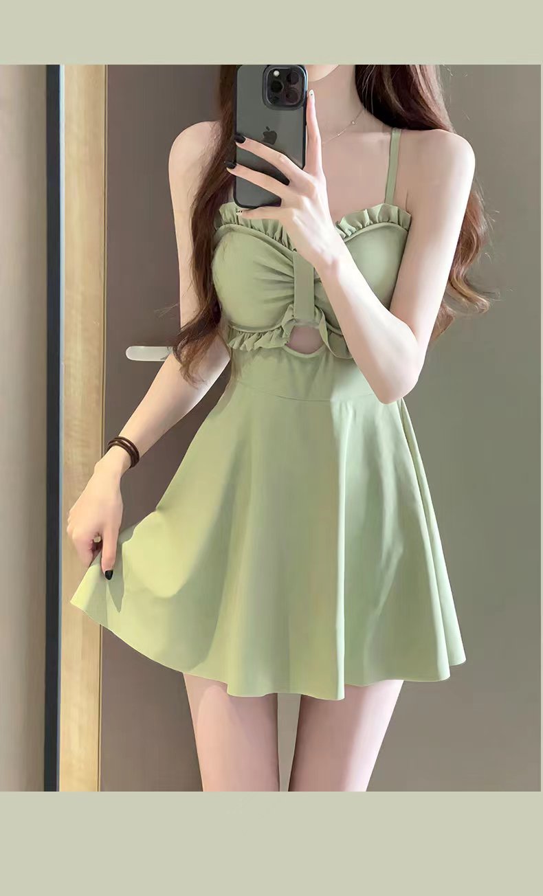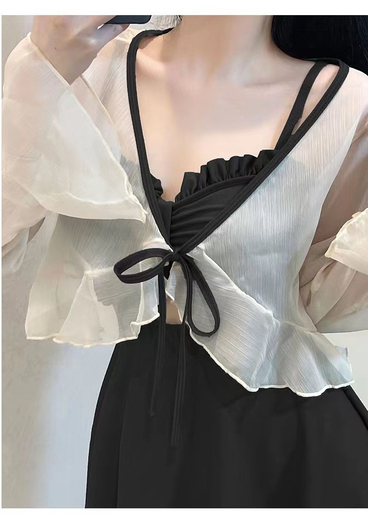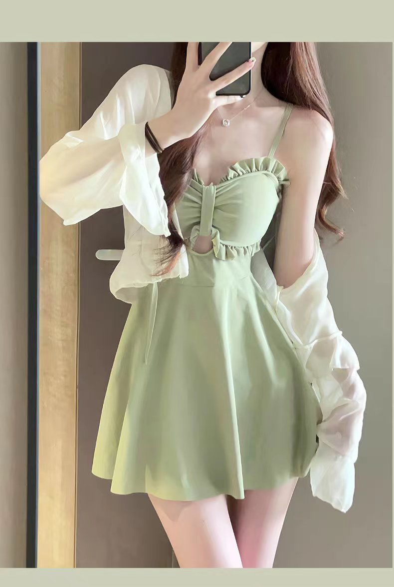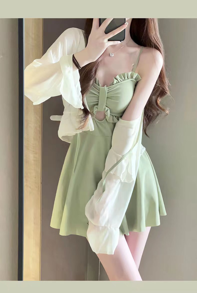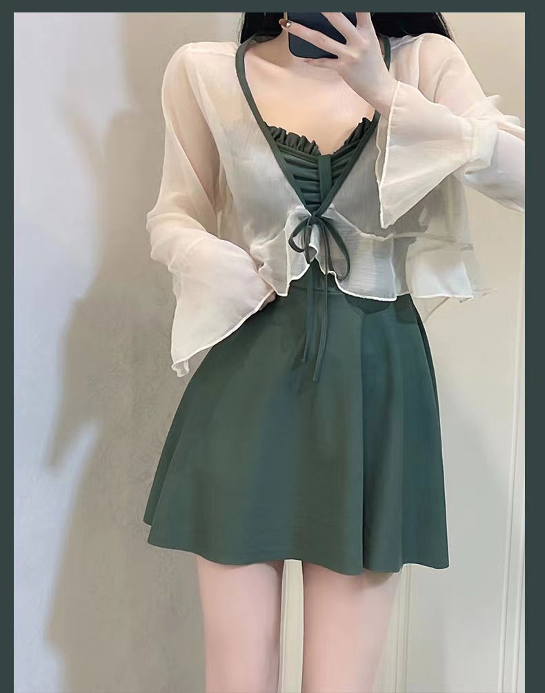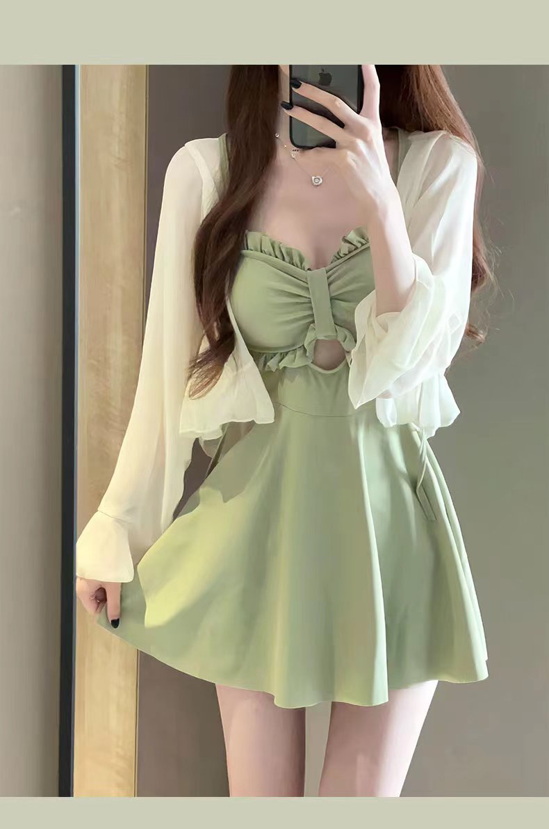 수영복 여자의 원피스 슬링 투피스 선크림 긴 소매 작은 재킷 원피스 보수적 인 온천 수영복 슬리밍 휴가스토어 가기