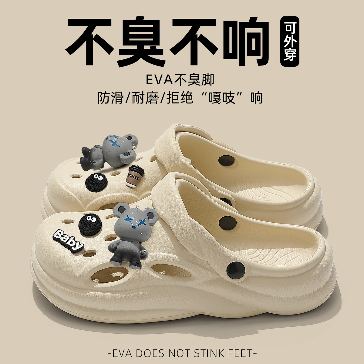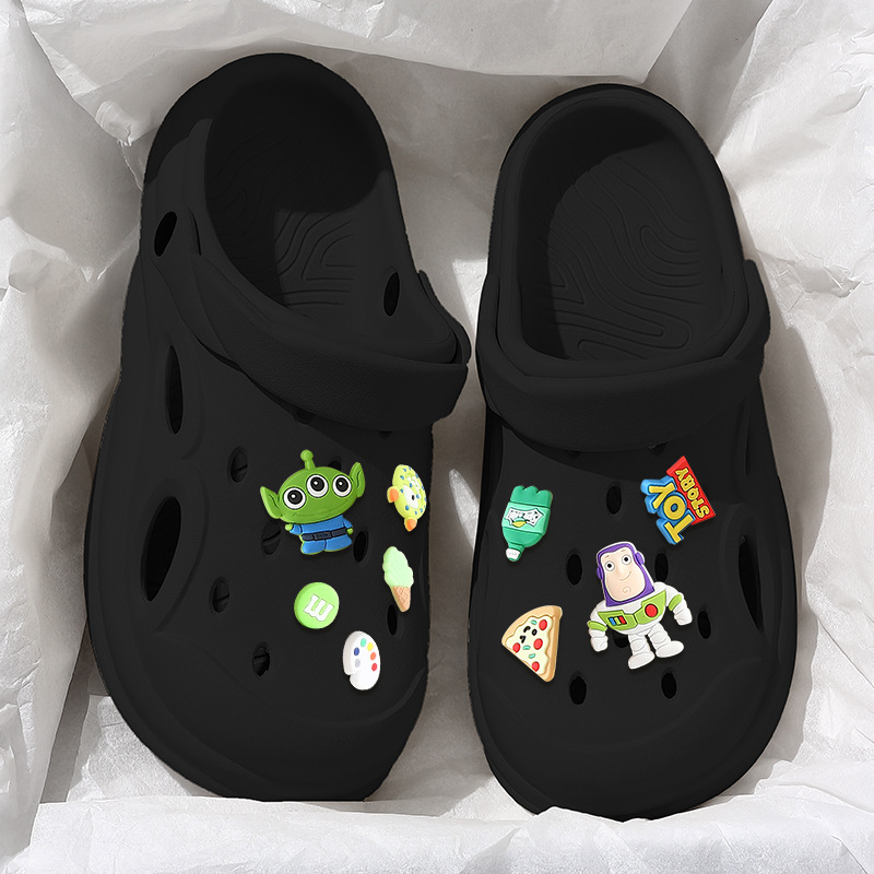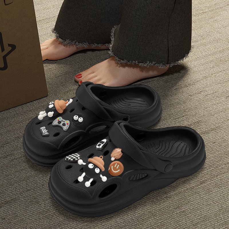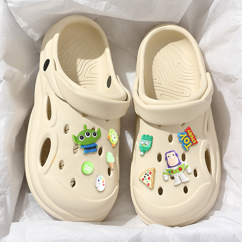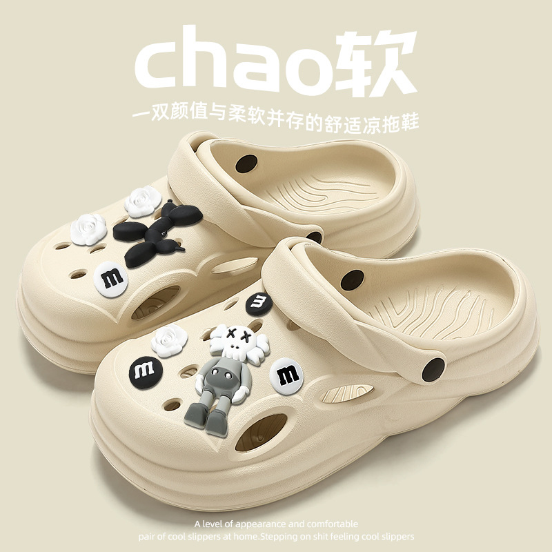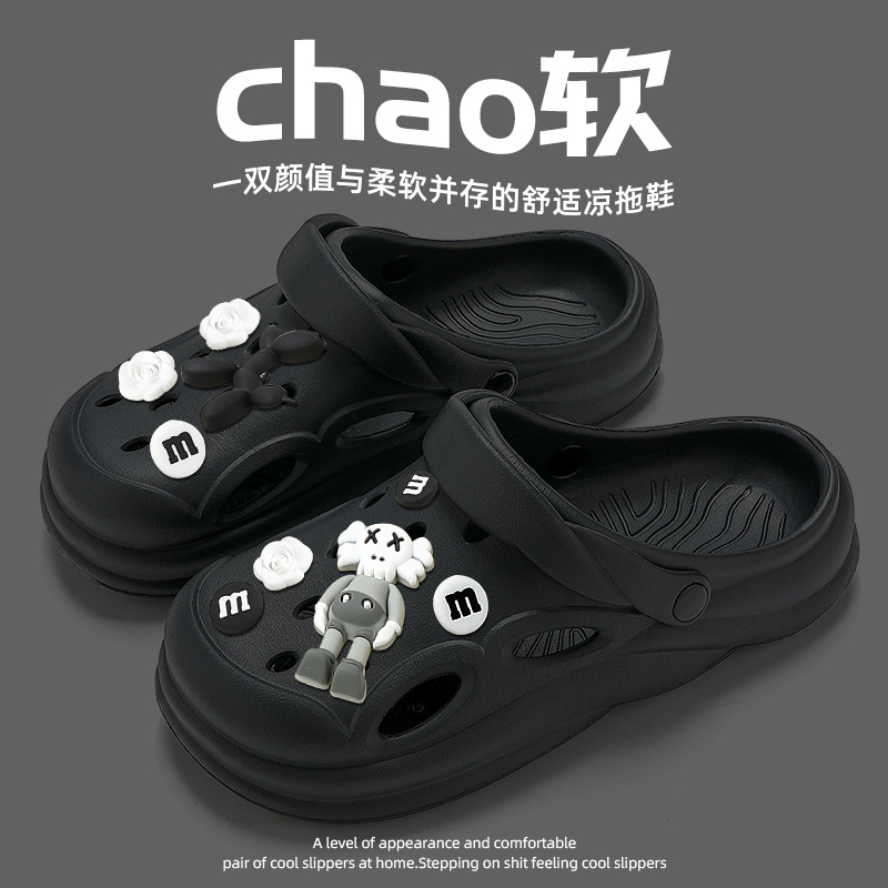踩屎感洞洞鞋女夏季2023新款芝麻街厚底包头拖鞋男夏防滑外穿批发