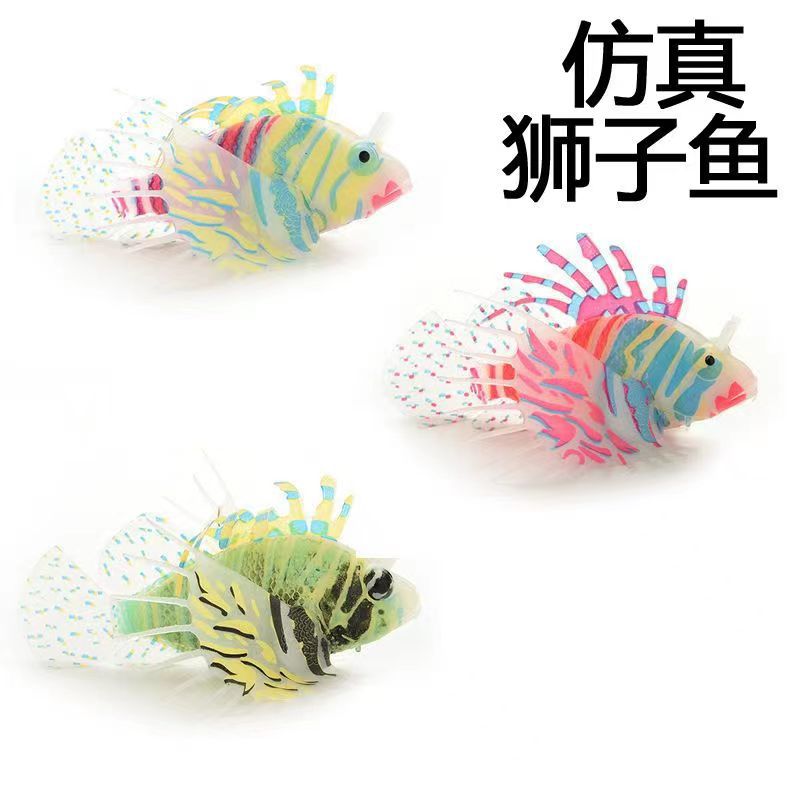 물고기 탱크 풍경 장식 시뮬레이션 사자 물고기 수족관 장식 실리콘 소재 발광 형광 색 사자 물고기