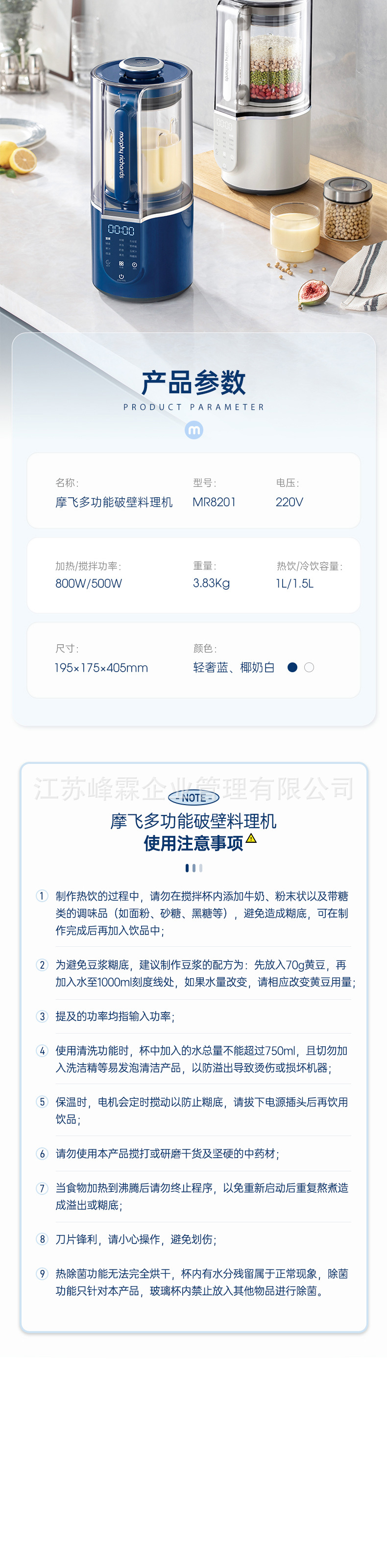 • 다기능 벽 깨는 요리 기계 MR8201 블루
