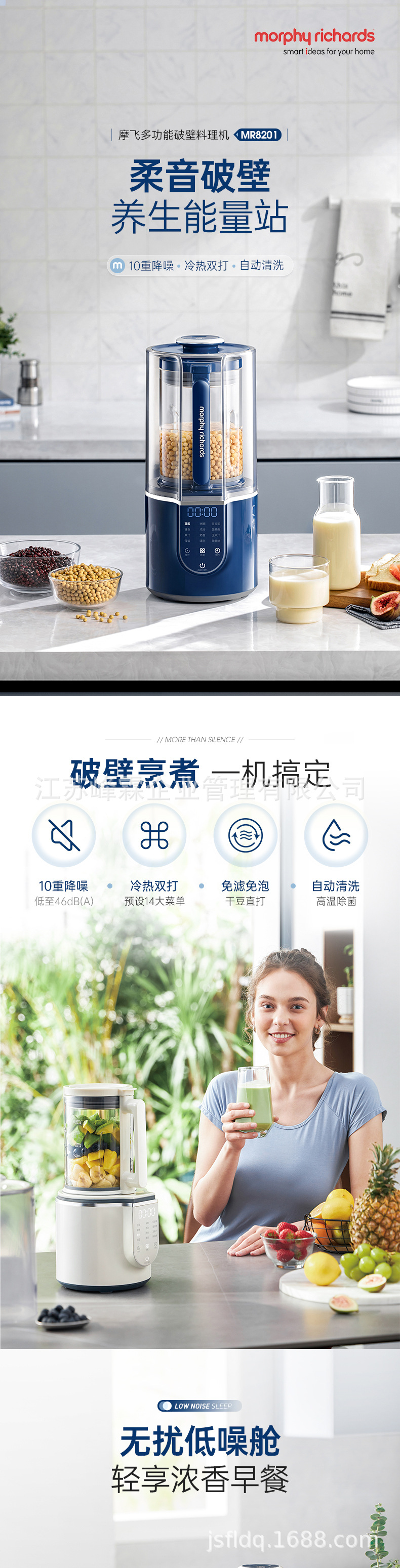 Mofei 벽 깨는 기계 가정용 소프트 톤 자동 콩 우유 기계 MR8201 대용량 다기능 식품 보충 요리 기계스토어 가기