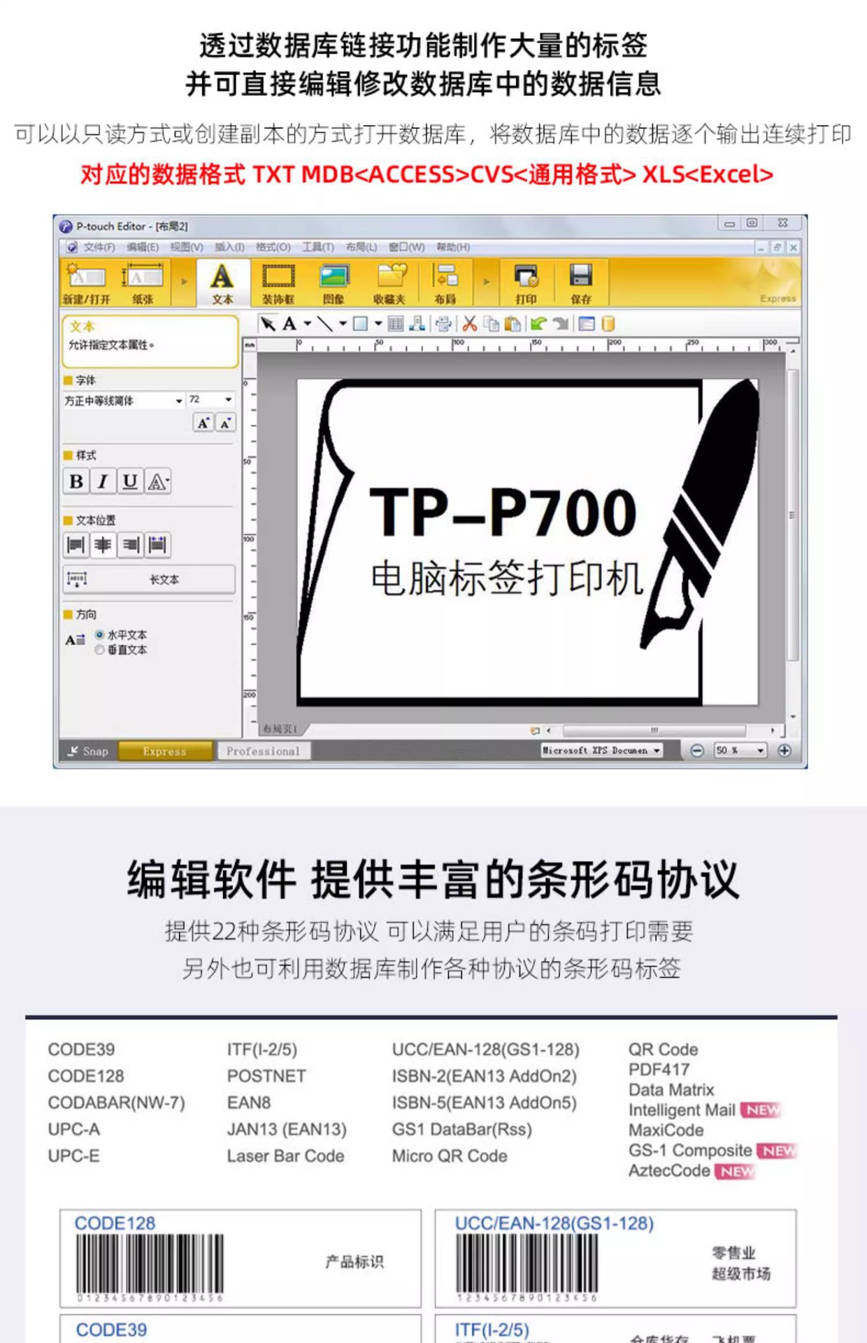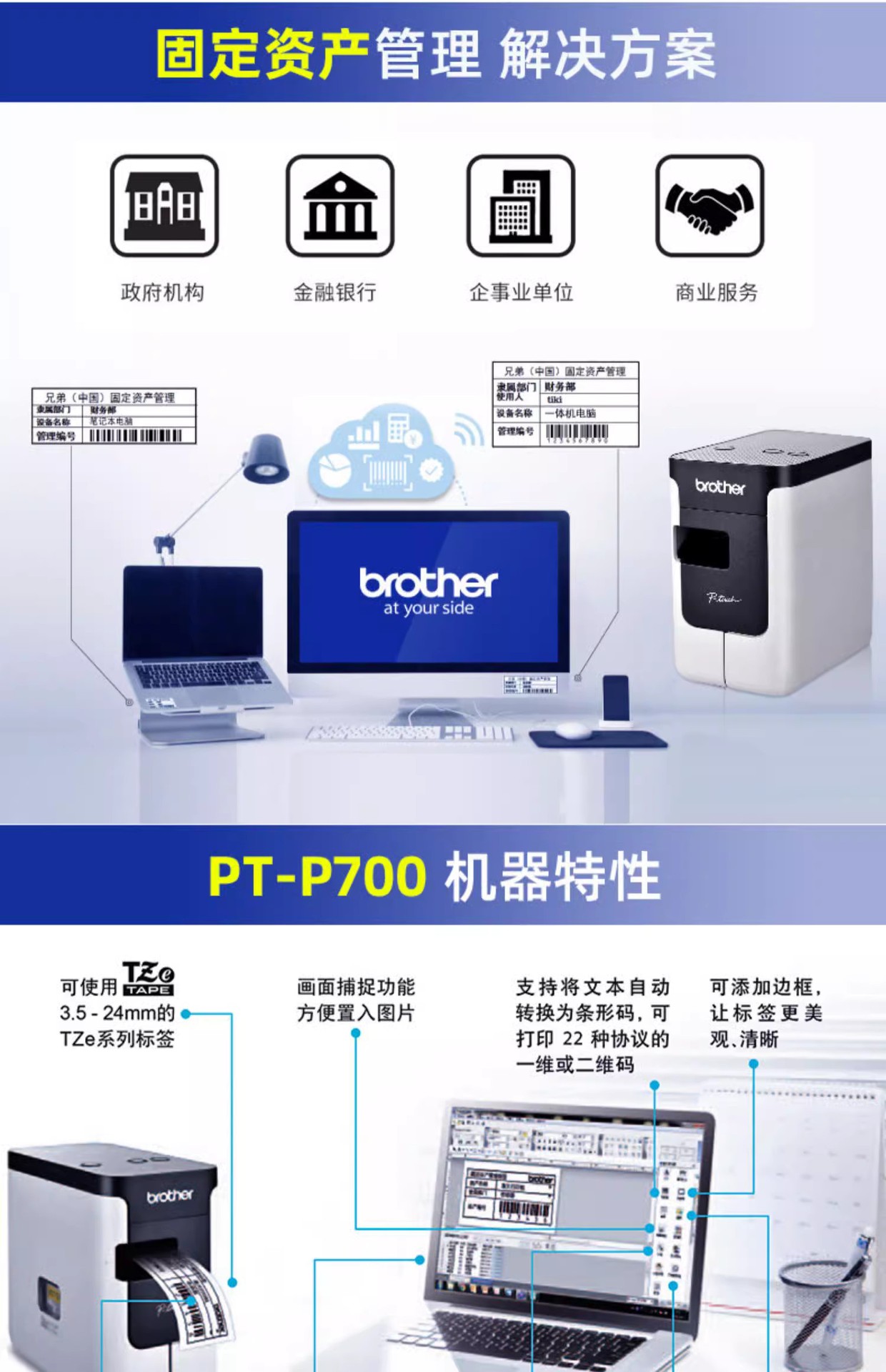 형제 컴퓨터 라벨링 기계 PT-P700 호텔 명판 라벨 사무실 문서 식별 의료 라벨 프린터