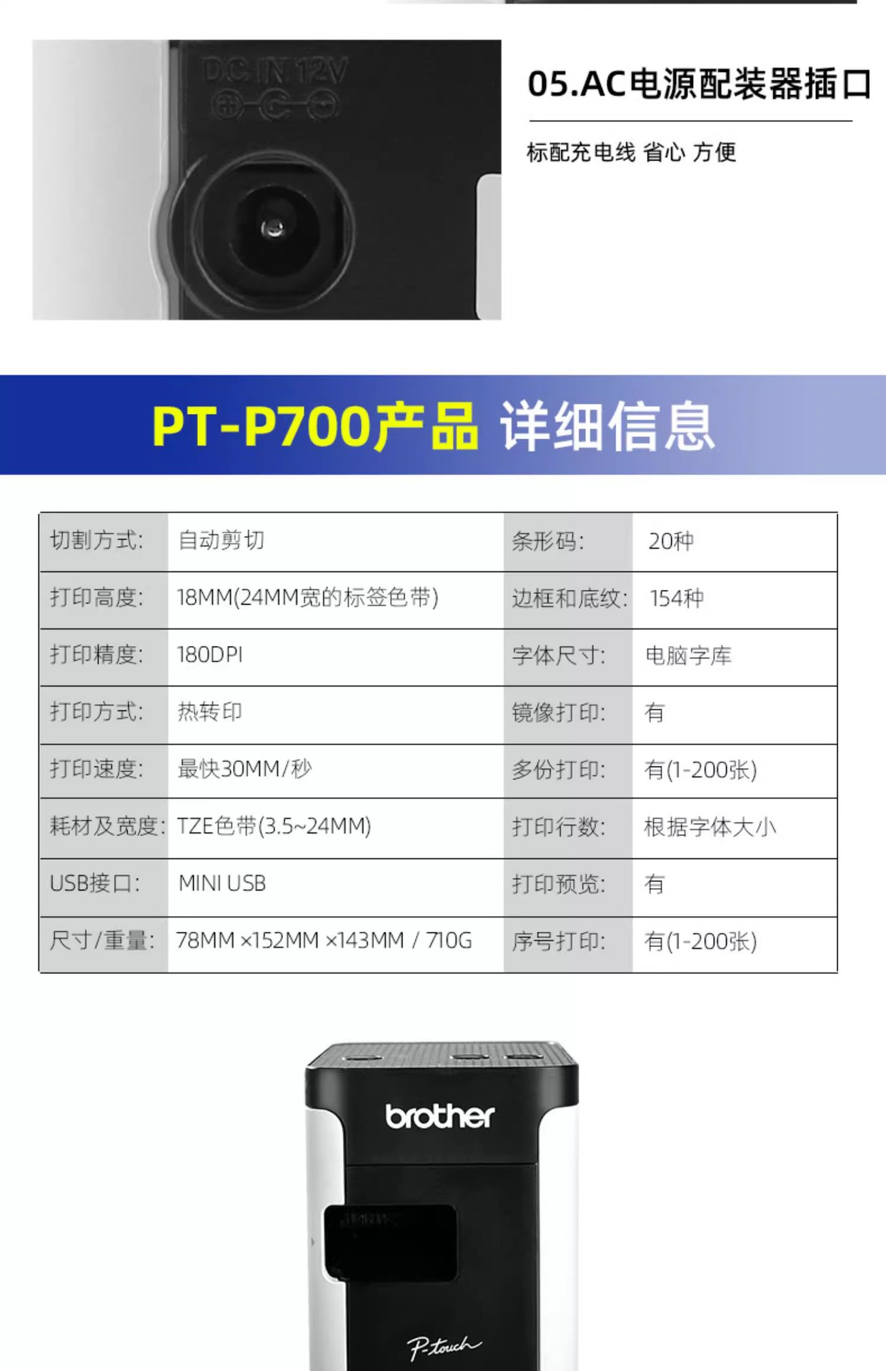 형제 컴퓨터 라벨링 기계 PT-P700 호텔 명판 라벨 사무실 문서 식별 의료 라벨 프린터스토어 가기
