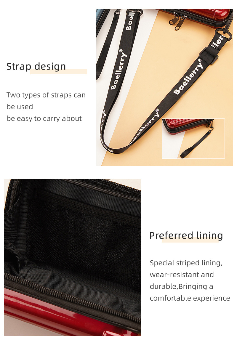 Baellerry 새로운 여성용 보관 가방 하드 쉘 PC 스트라이프 숄더 크로스 바디 백 미니 박스 화장품 가방 여성
