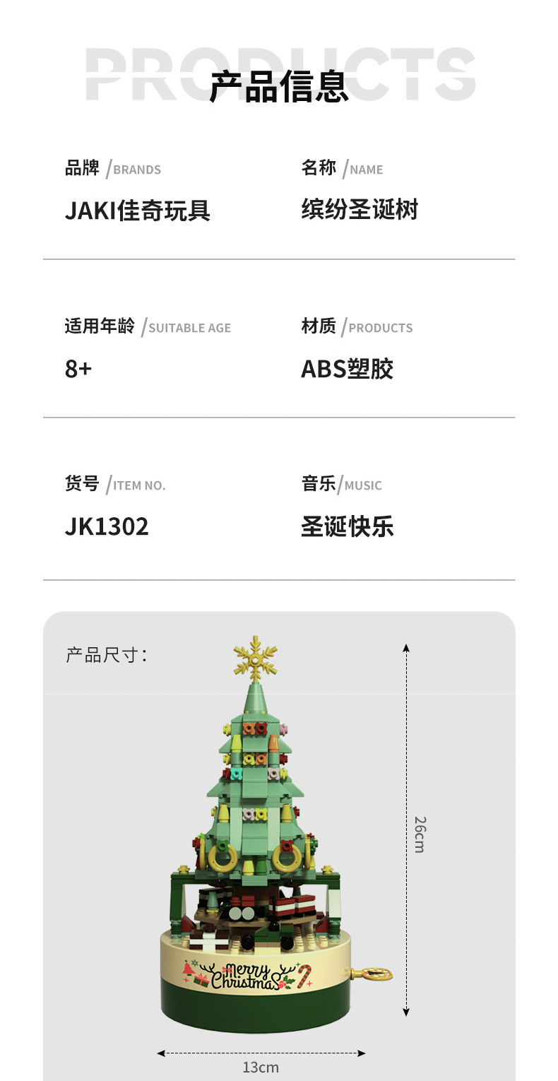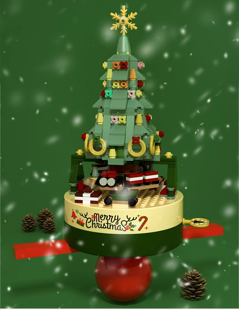 Jiaqi 1302 다채로운 크리스마스 트리 빌딩 블록 회전 음악 상자 호환 크리스마스 빌딩 블록 생일 선물 장식품 장난감스토어 가기