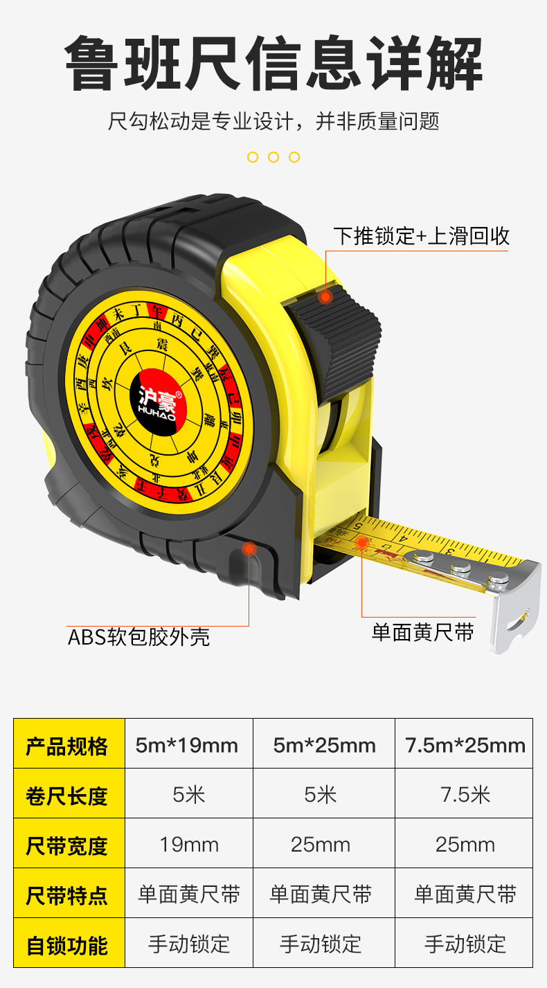 상하이 하오 스틸 테이프 3/5/10 m 고정밀 가정용 내마모성 쌀 원형 자 두껍고 단단한 스테인레스 스틸 루반 자