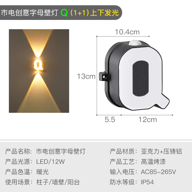• 전원 연결/문자 Q/위아래 발광 벽 램프/12 와트 따뜻한 빛