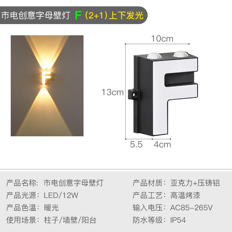 • 전원 연결/문자 F/위아래 발광 벽 램프/12 와트 따뜻한 빛