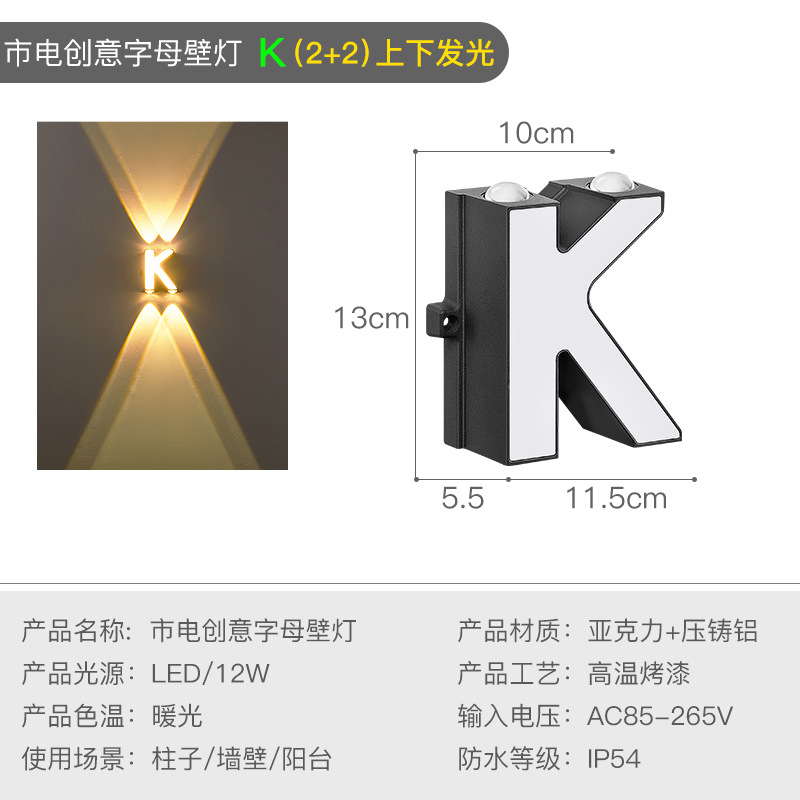 • 전기 연결/문자 K/위아래 발광 벽 램프/12 와트 따뜻한 빛