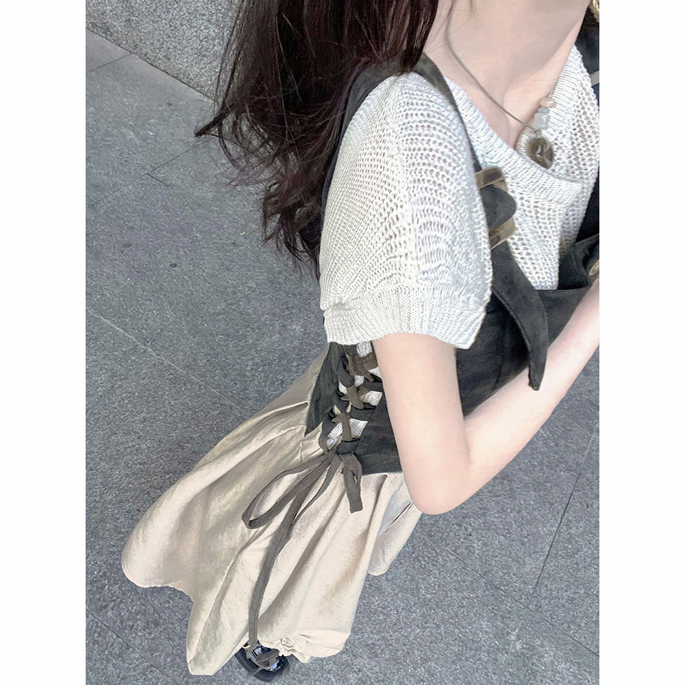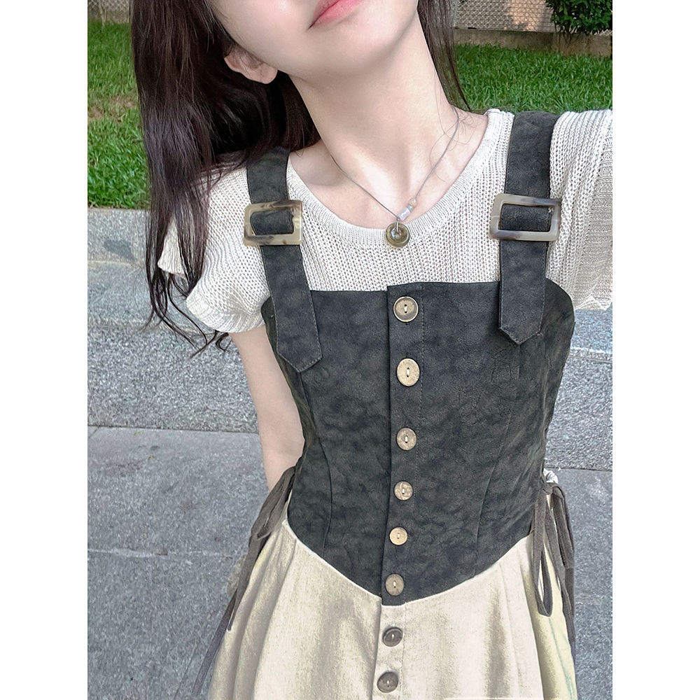 여름 홍콩 스타일 복고풍 세련된 멋진 스타일 하이 엔드 탑 시크 독특한 타이트 허리 원피스 투피스 세트스토어 가기