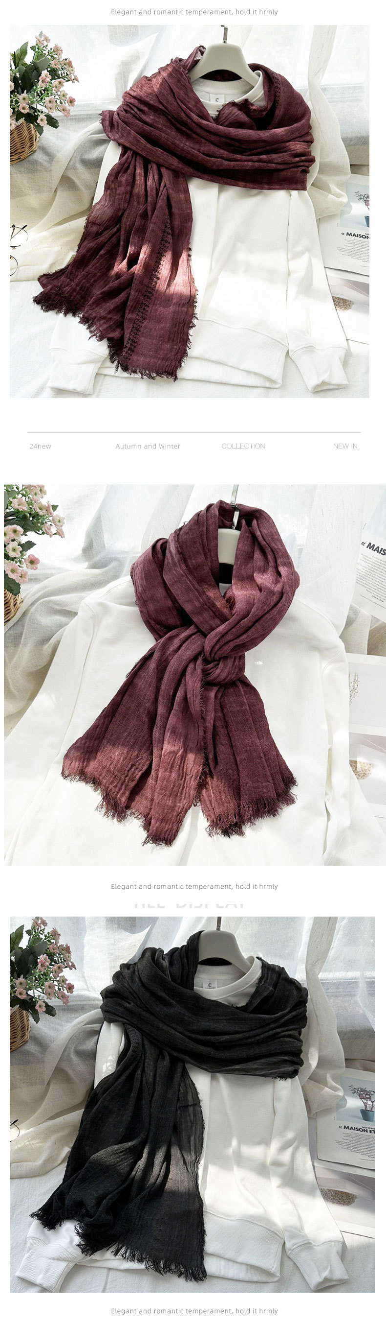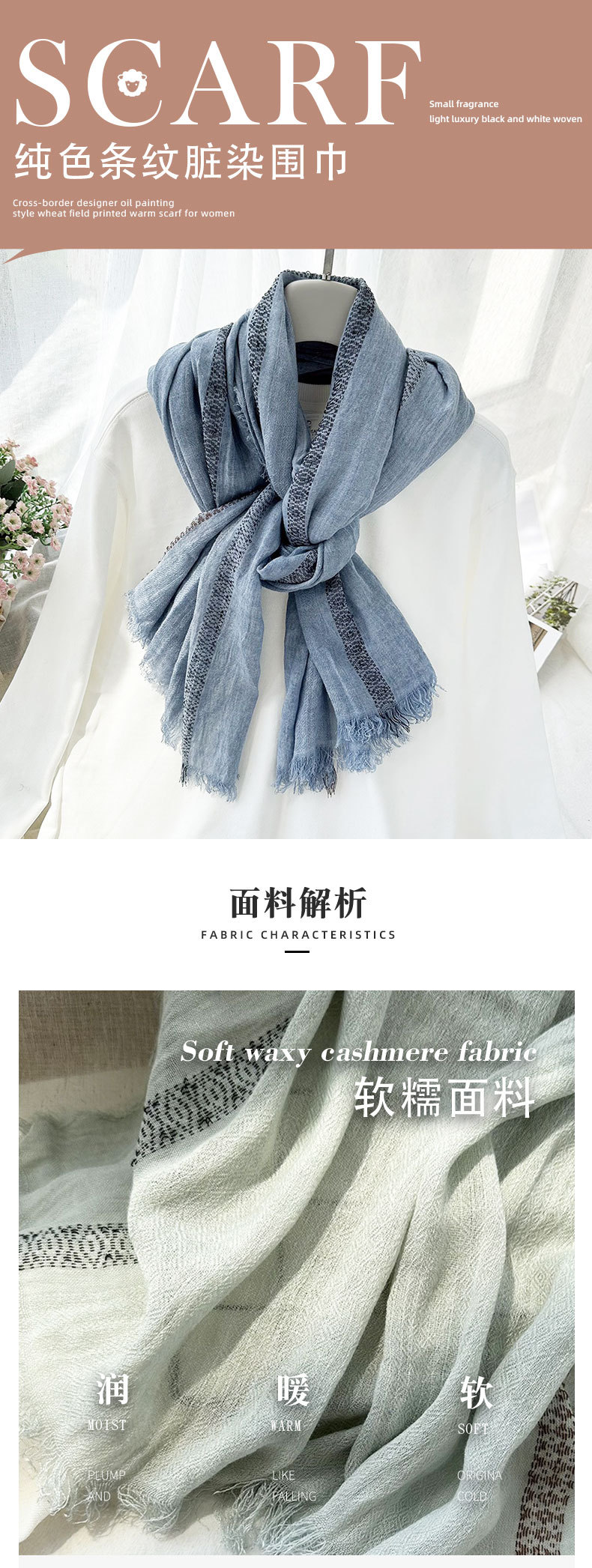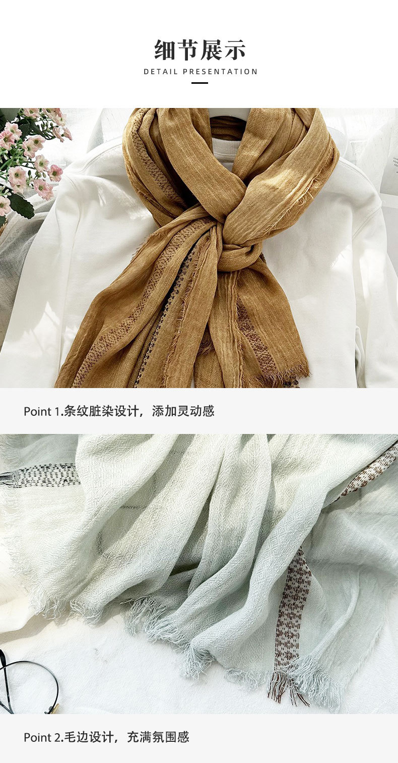 재고 코튼 및 리넨 스카프 여성의 가을 및 겨울 새로운 예술적 레트로 올 매치 솔리드 컬러 스트라이프 더티 다이 대외 무역 숄 아마존스토어 가기