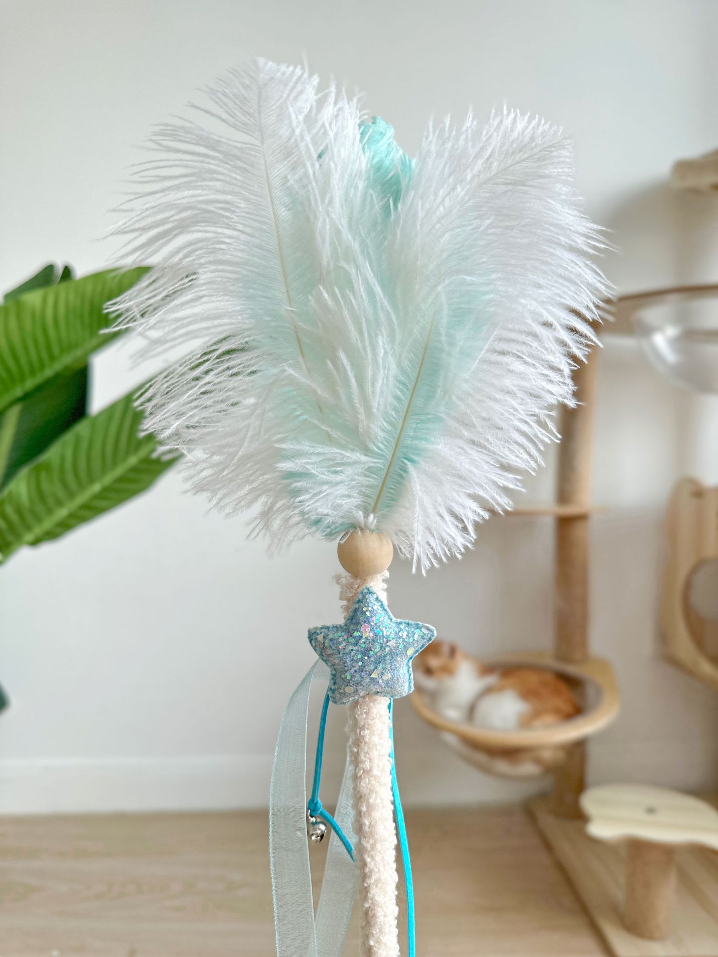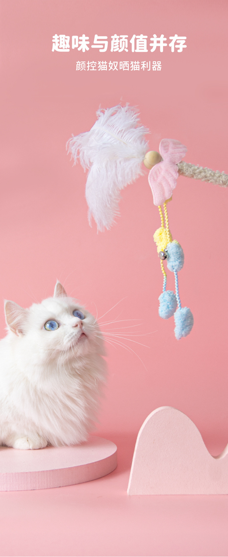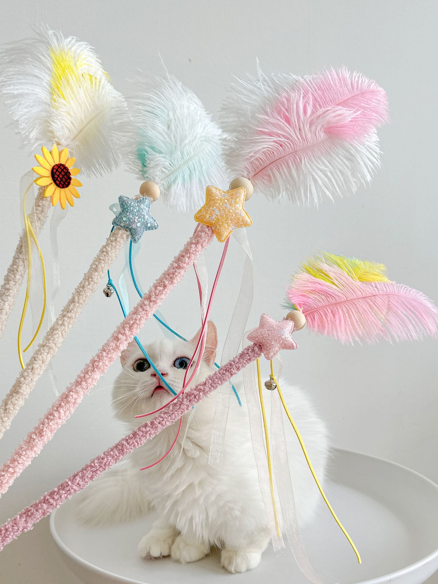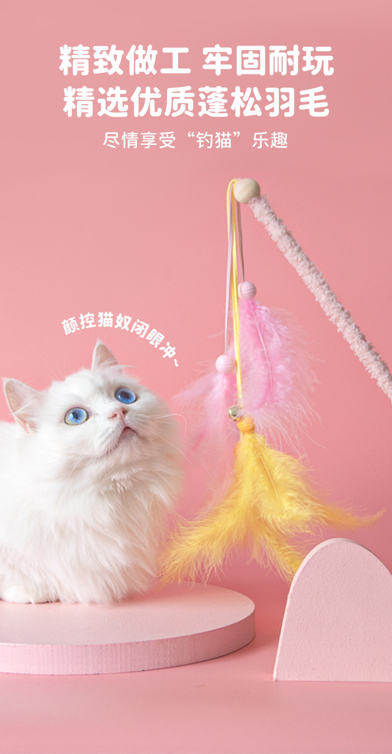 새로운 타조 털 고양이 티저 봉제 나무 기둥 깃털 Duoduo 고양이 셀프 안녕 장난감 대화 형 재미있는 애완 동물 장난감스토어 가기
