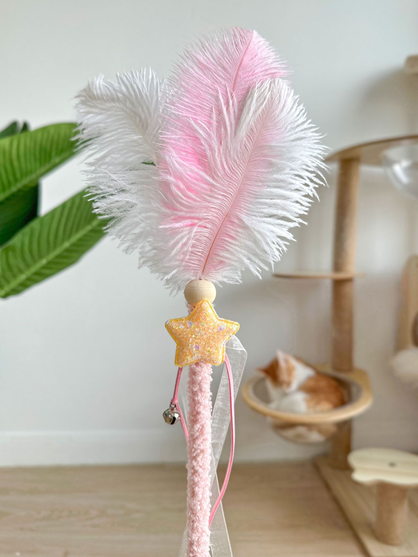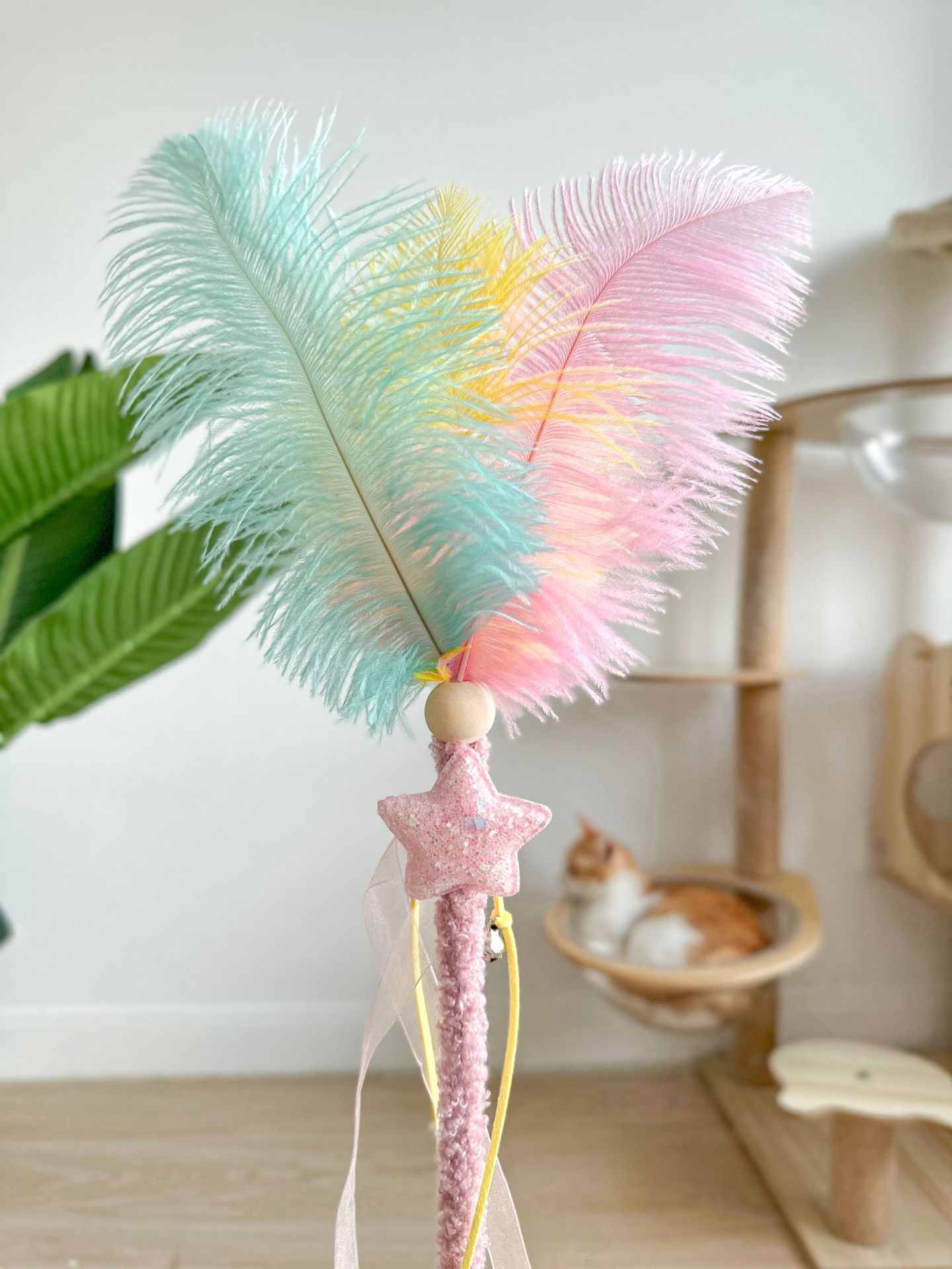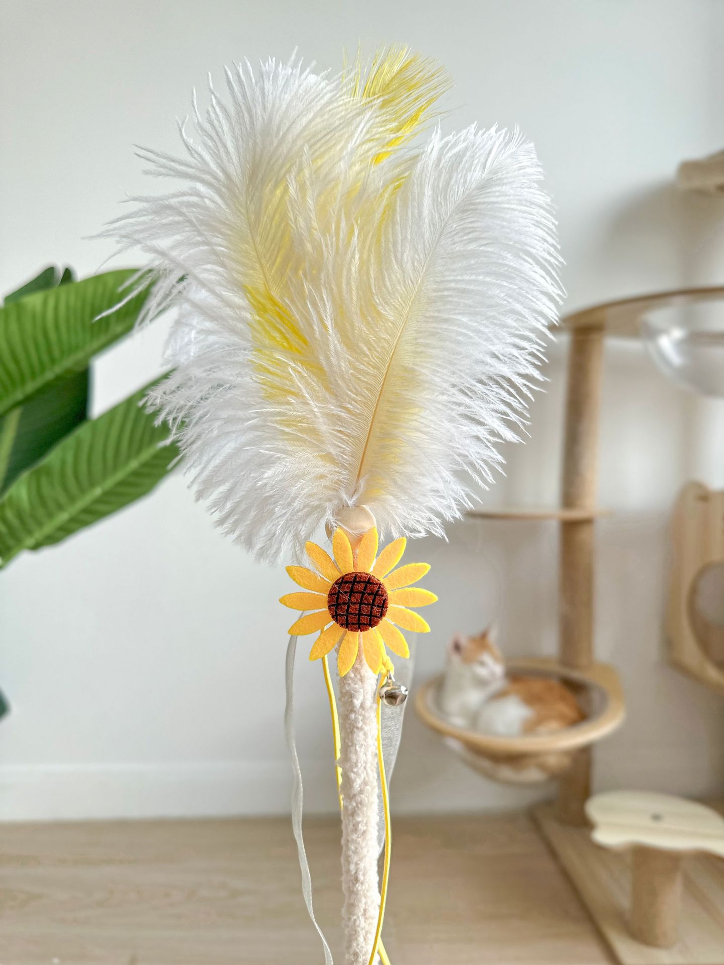 새로운 타조 털 고양이 티저 봉제 나무 기둥 깃털 Duoduo 고양이 셀프 안녕 장난감 대화 형 재미있는 애완 동물 장난감