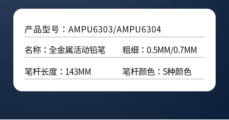 Chenguang Youth Edition 금속 기계 연필 0.5/0.7 낮은 중력 연필 학생 활동 연필 AMPU6303