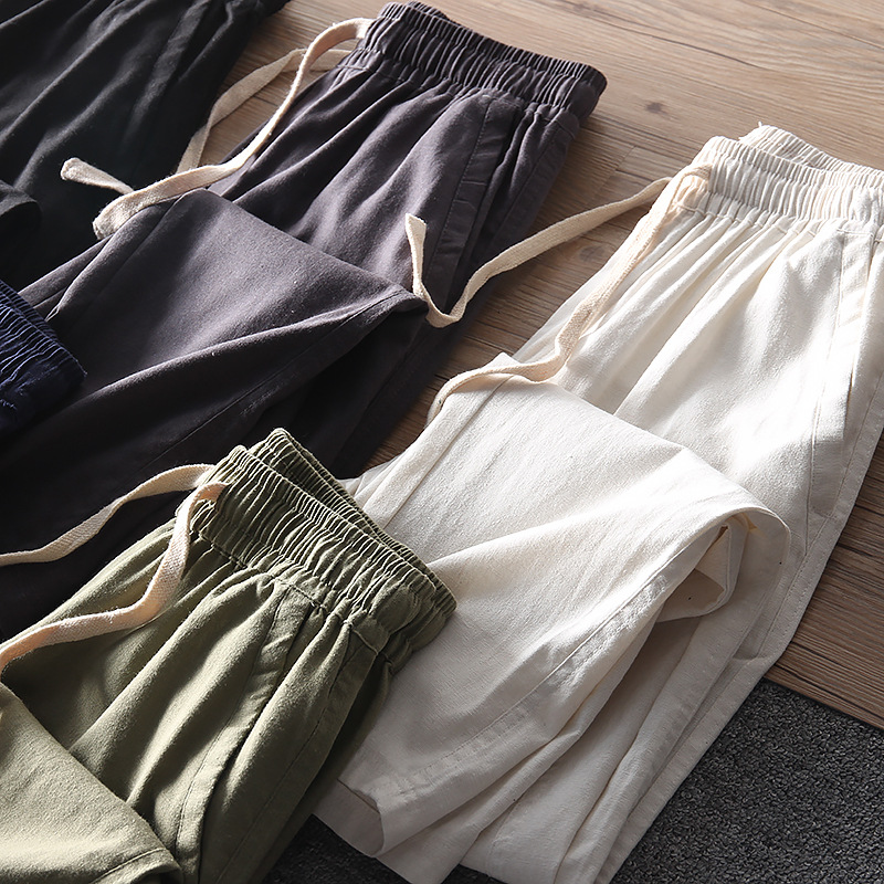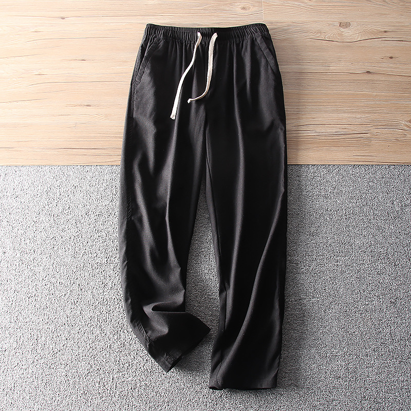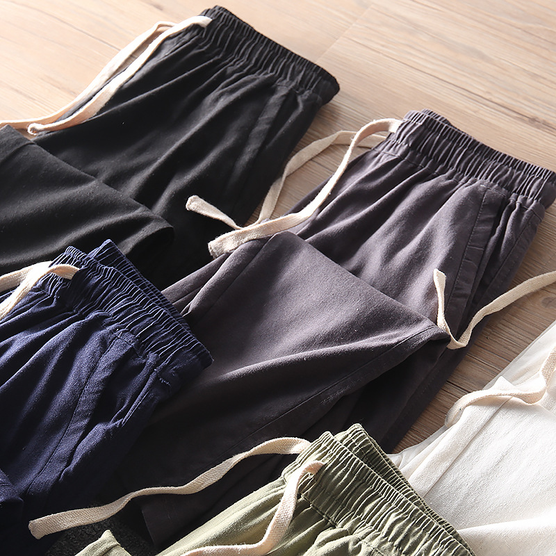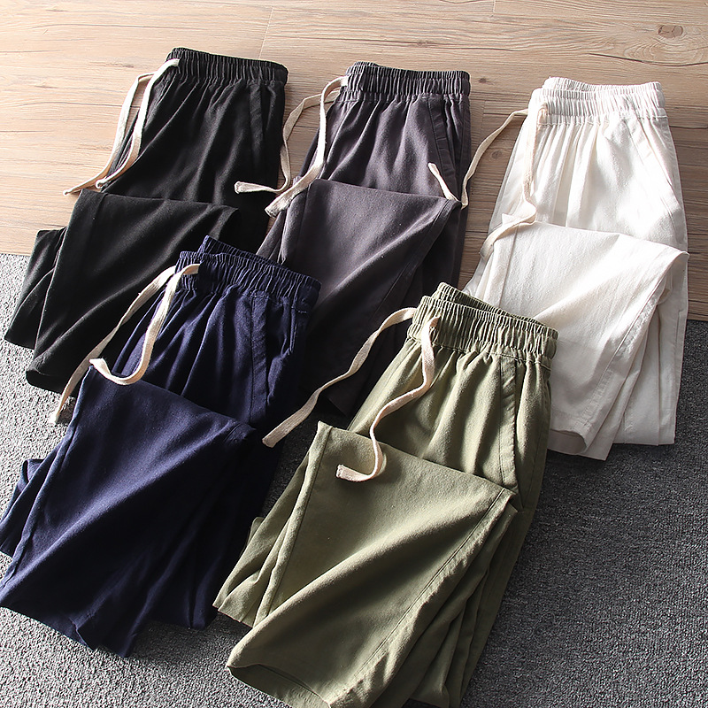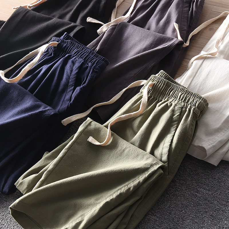 코튼 린넨 혼방 플러스 사이즈 느슨한 통기성 얇은 플랫 입 단색 린넨 스트레이트 캐주얼 바지 남성 여름 유행스토어 가기