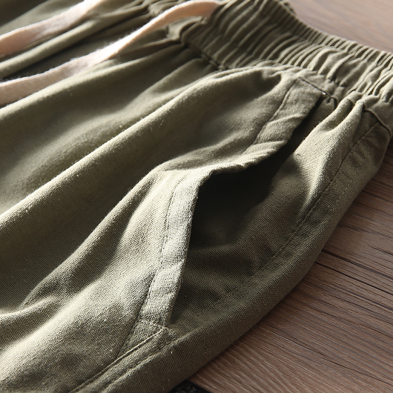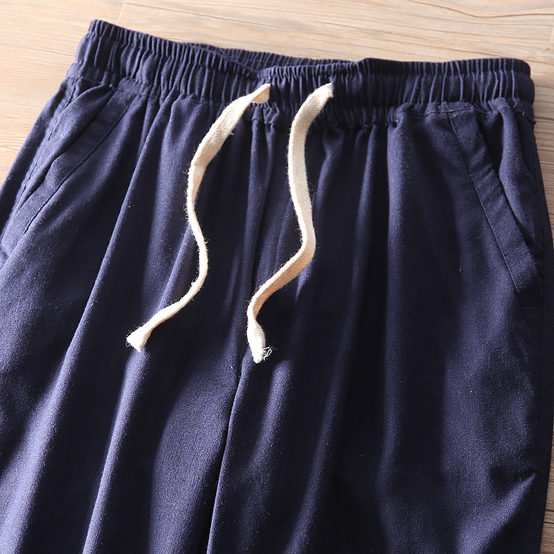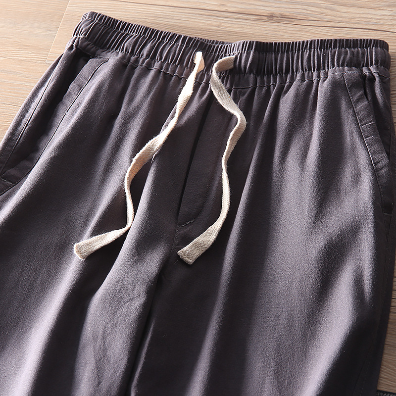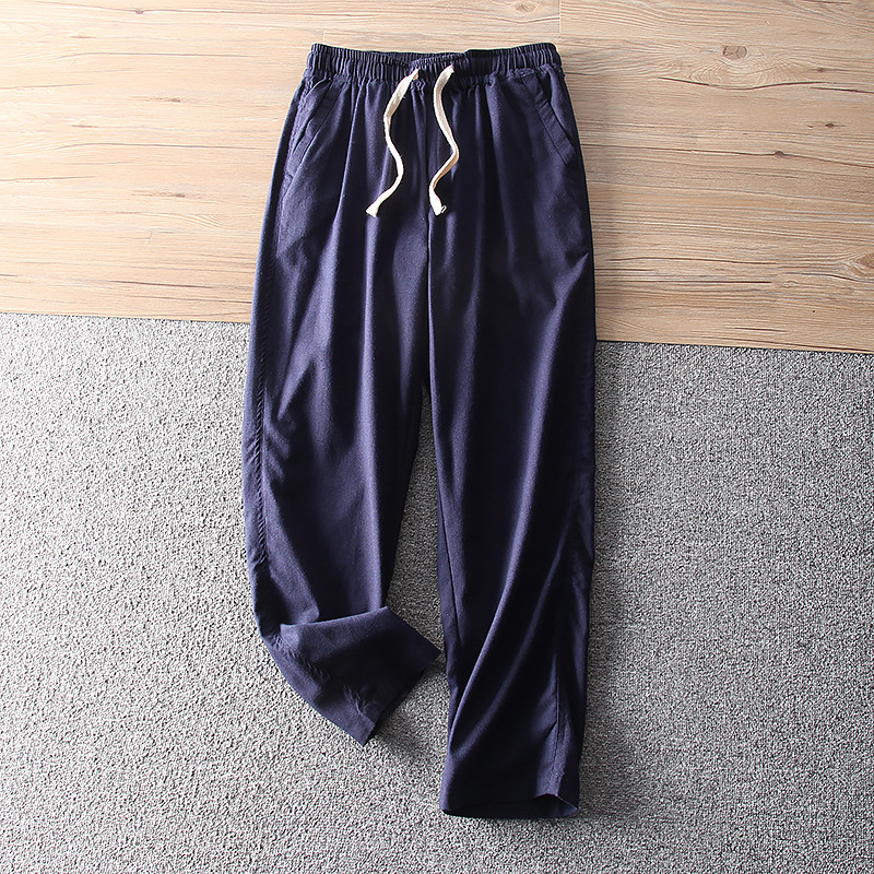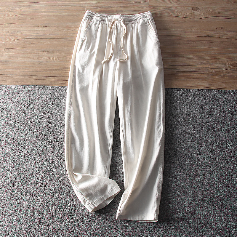 코튼 린넨 혼방 플러스 사이즈 느슨한 통기성 얇은 플랫 입 단색 린넨 스트레이트 캐주얼 바지 남성 여름 유행스토어 가기