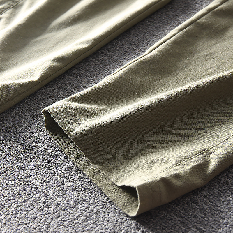 코튼 린넨 혼방 플러스 사이즈 느슨한 통기성 얇은 플랫 입 단색 린넨 스트레이트 캐주얼 바지 남성 여름 유행