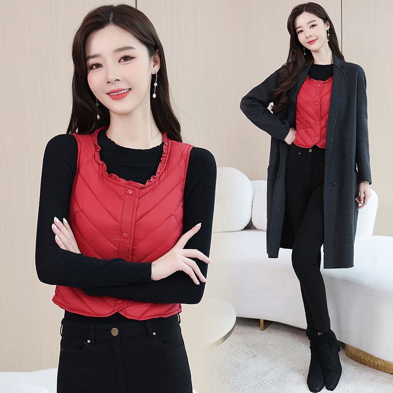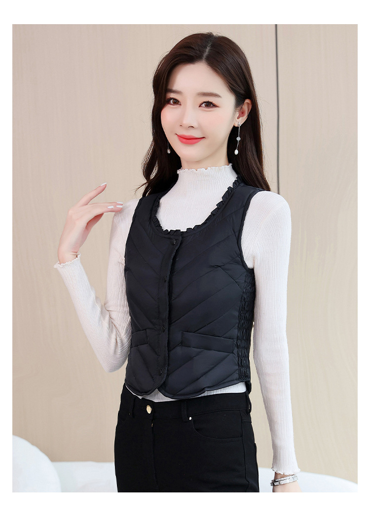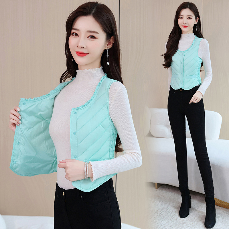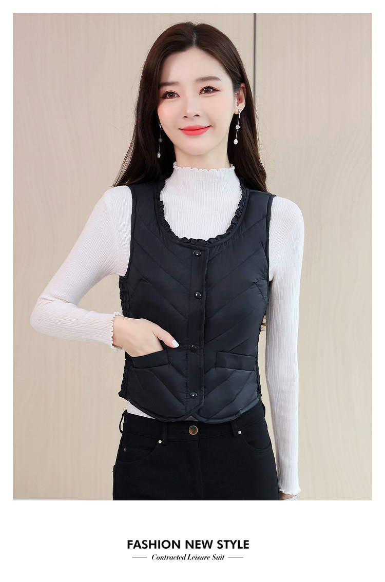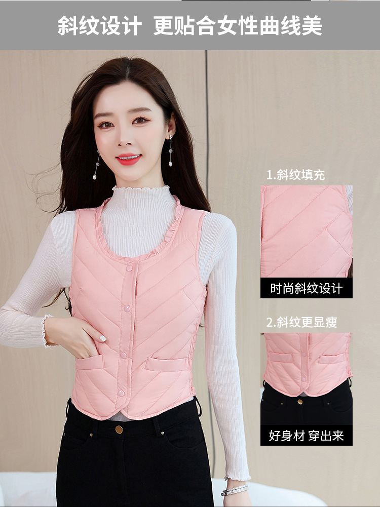 2024 새로운 다운 실크 조끼 여성의 경량 내부 착용 세련된 여성의 밀착 다운 실크 조끼 조끼 겉옷