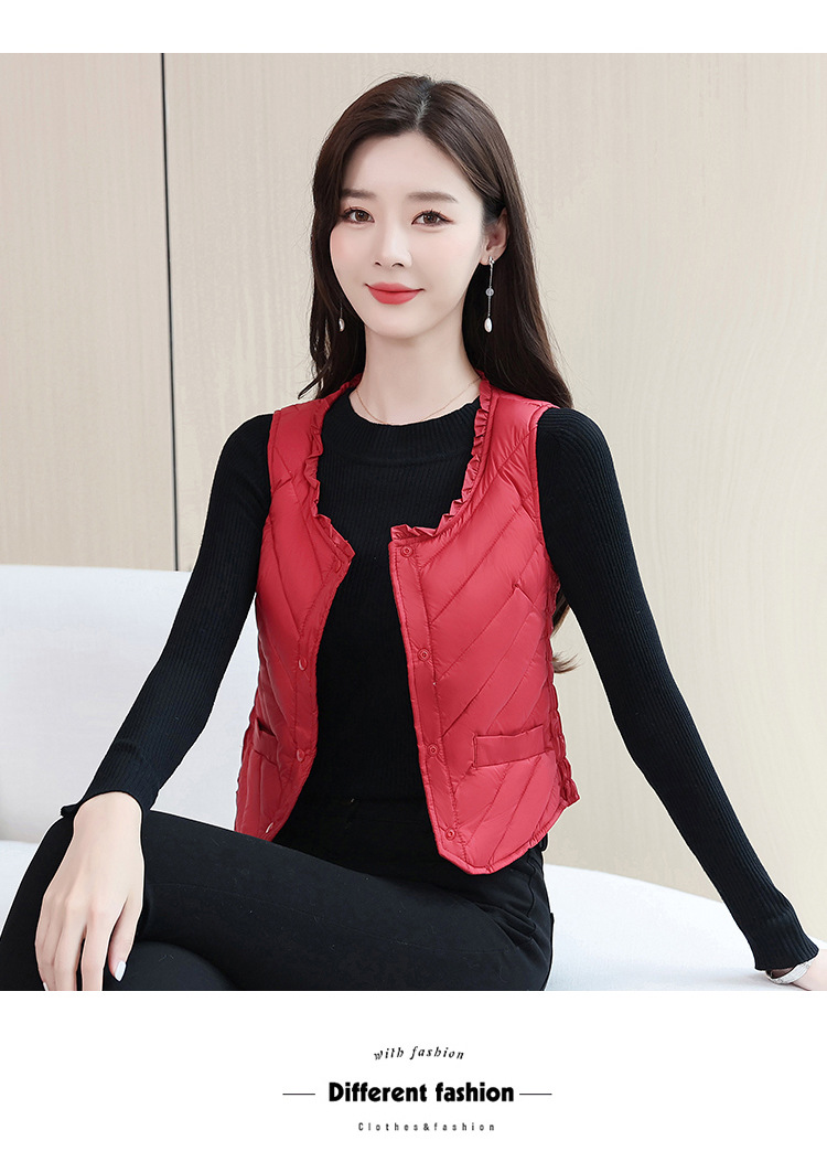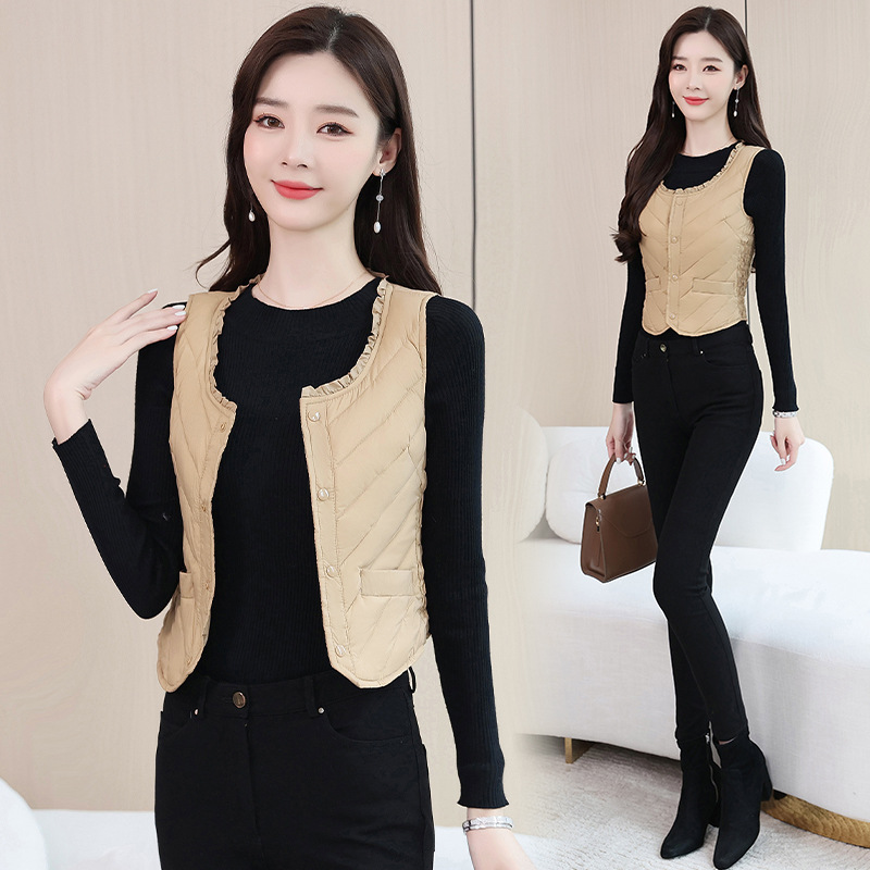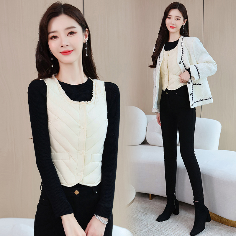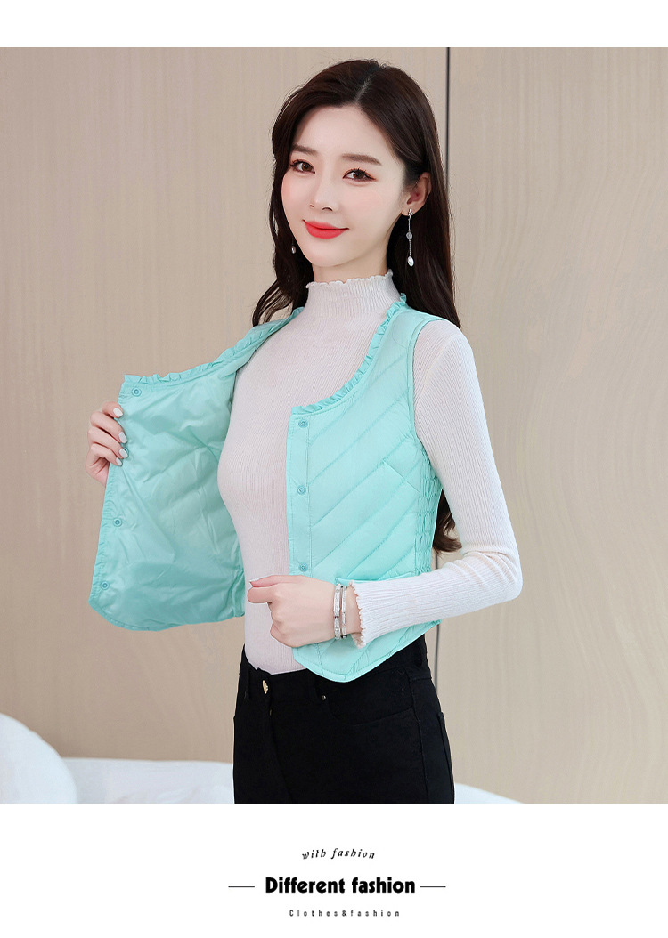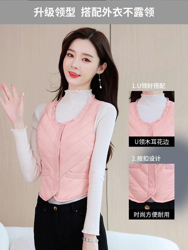 2024 새로운 다운 실크 조끼 여성의 경량 내부 착용 세련된 여성의 밀착 다운 실크 조끼 조끼 겉옷