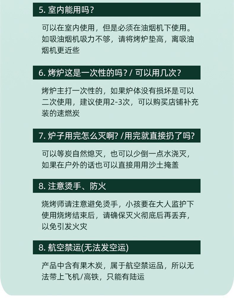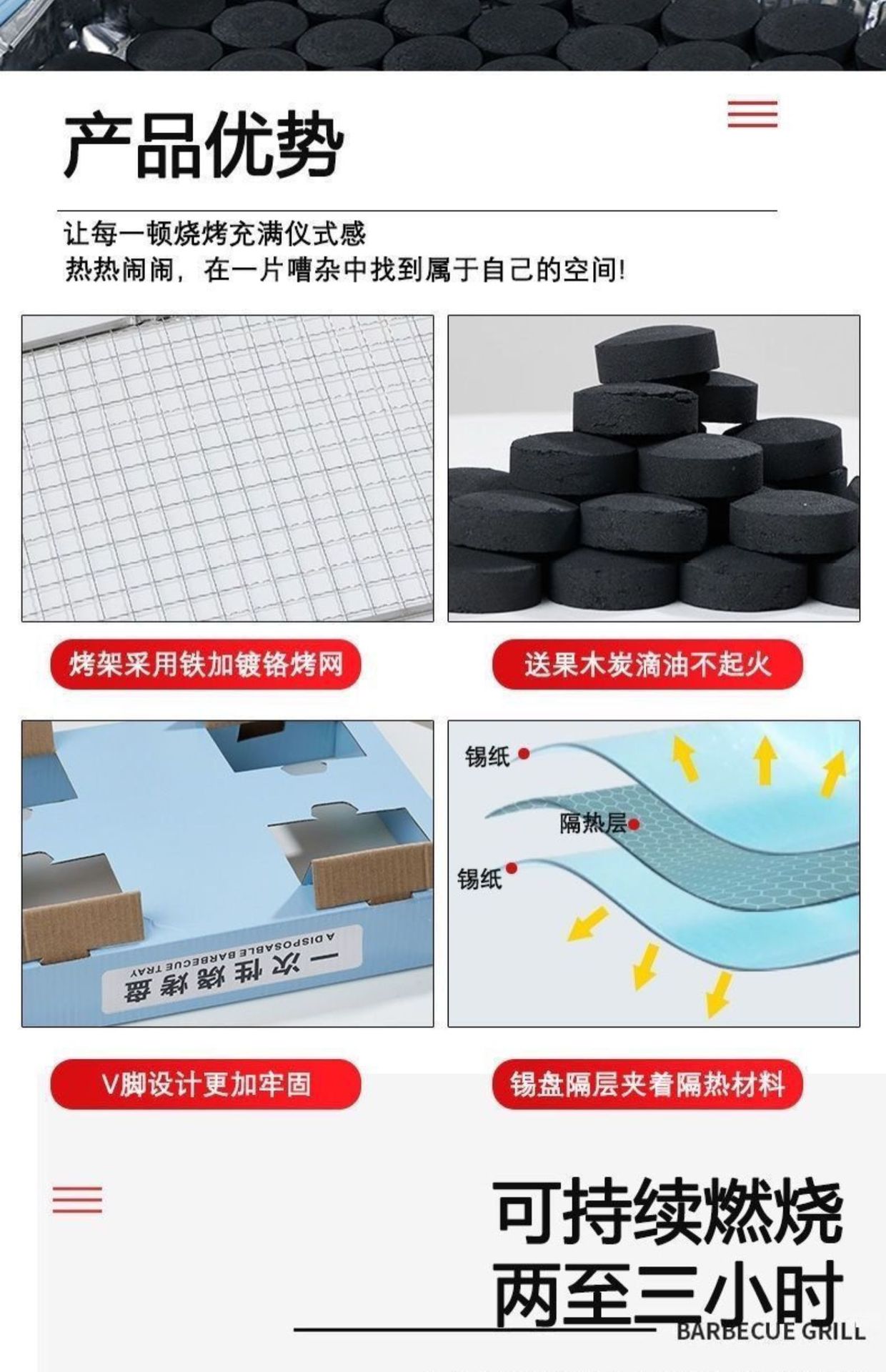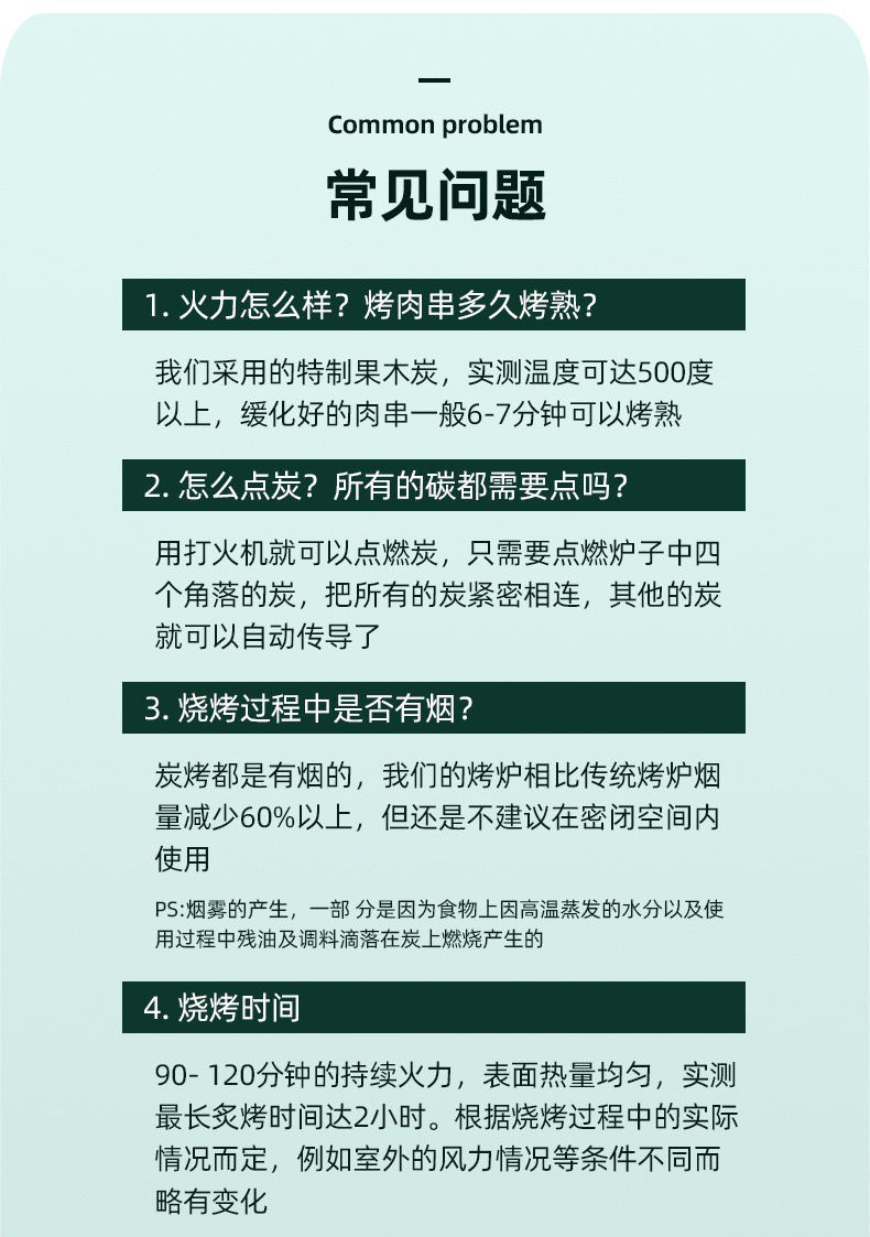 • 1-3 명이 숯 30 장을 보내기 위해 [2-3 시간 태울 수 있습니다] 세트
